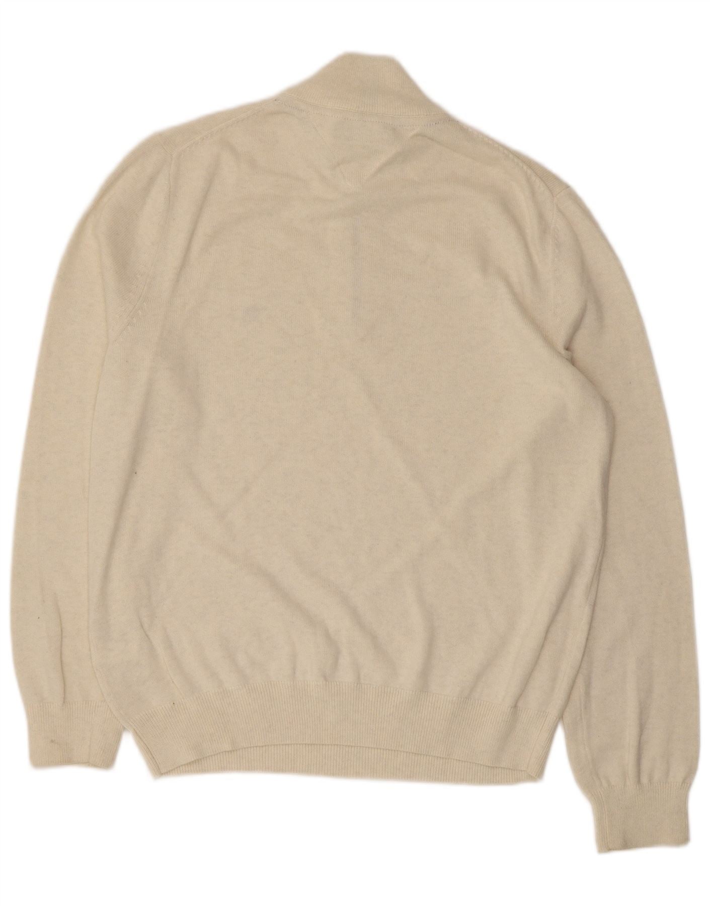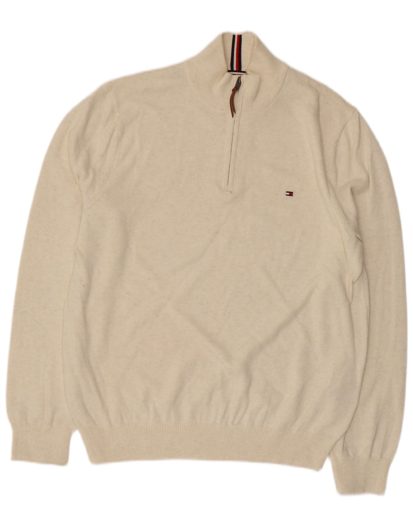 Suéter masculino TOMMY HILFIGER com zíper e gola grande de algodão branco
