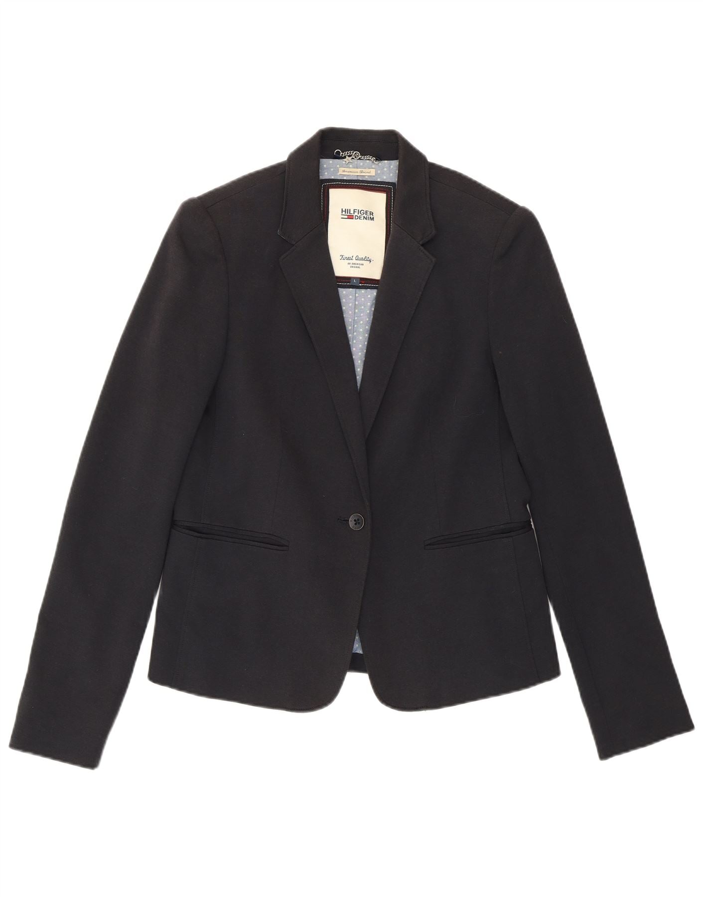 Jaqueta blazer feminina TOMMY HILFIGER com 1 botão Reino Unido 14 grande algodão azul marinho