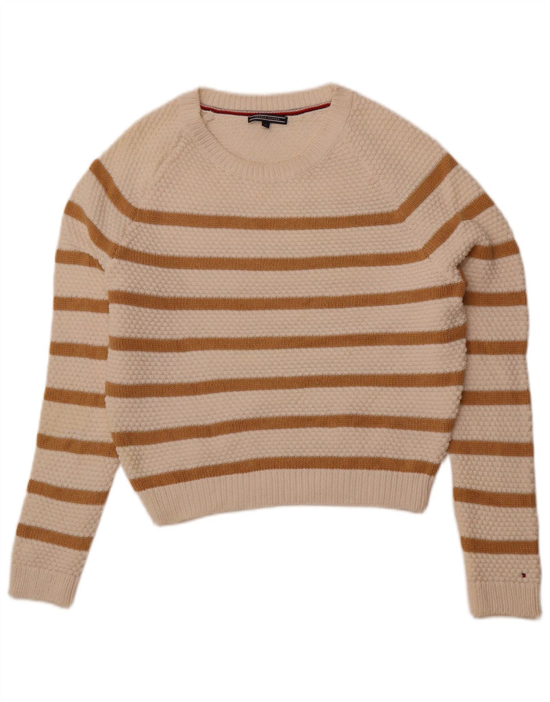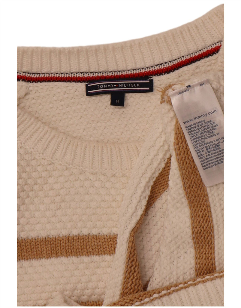 TOMMY HILFIGER Womens Crew Neck Jumper Sweater UK 14 Medium Off White