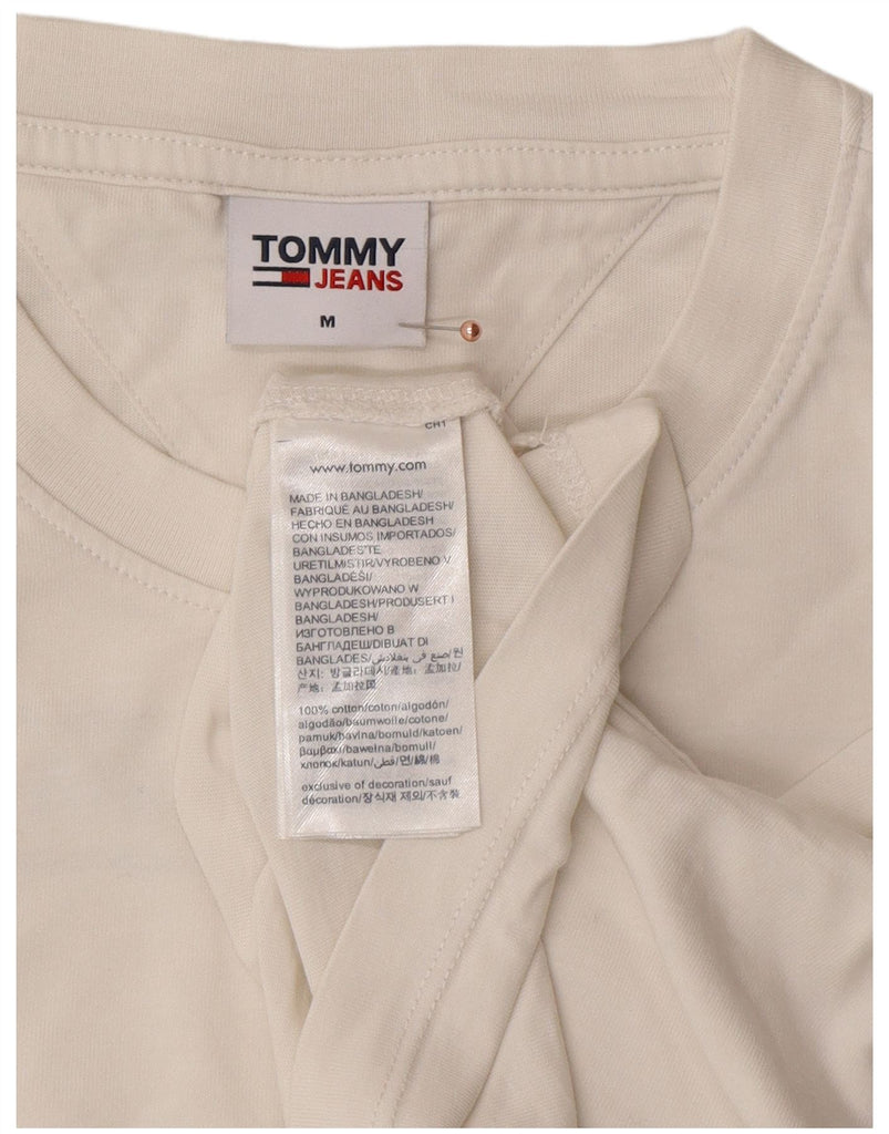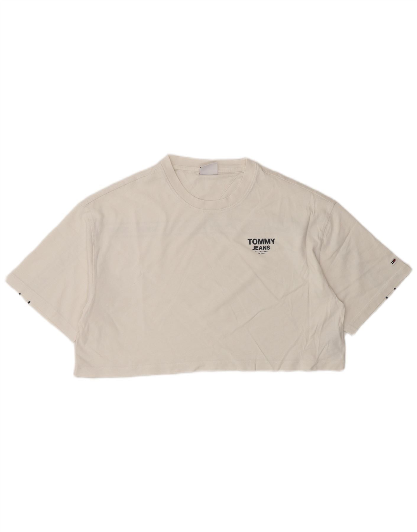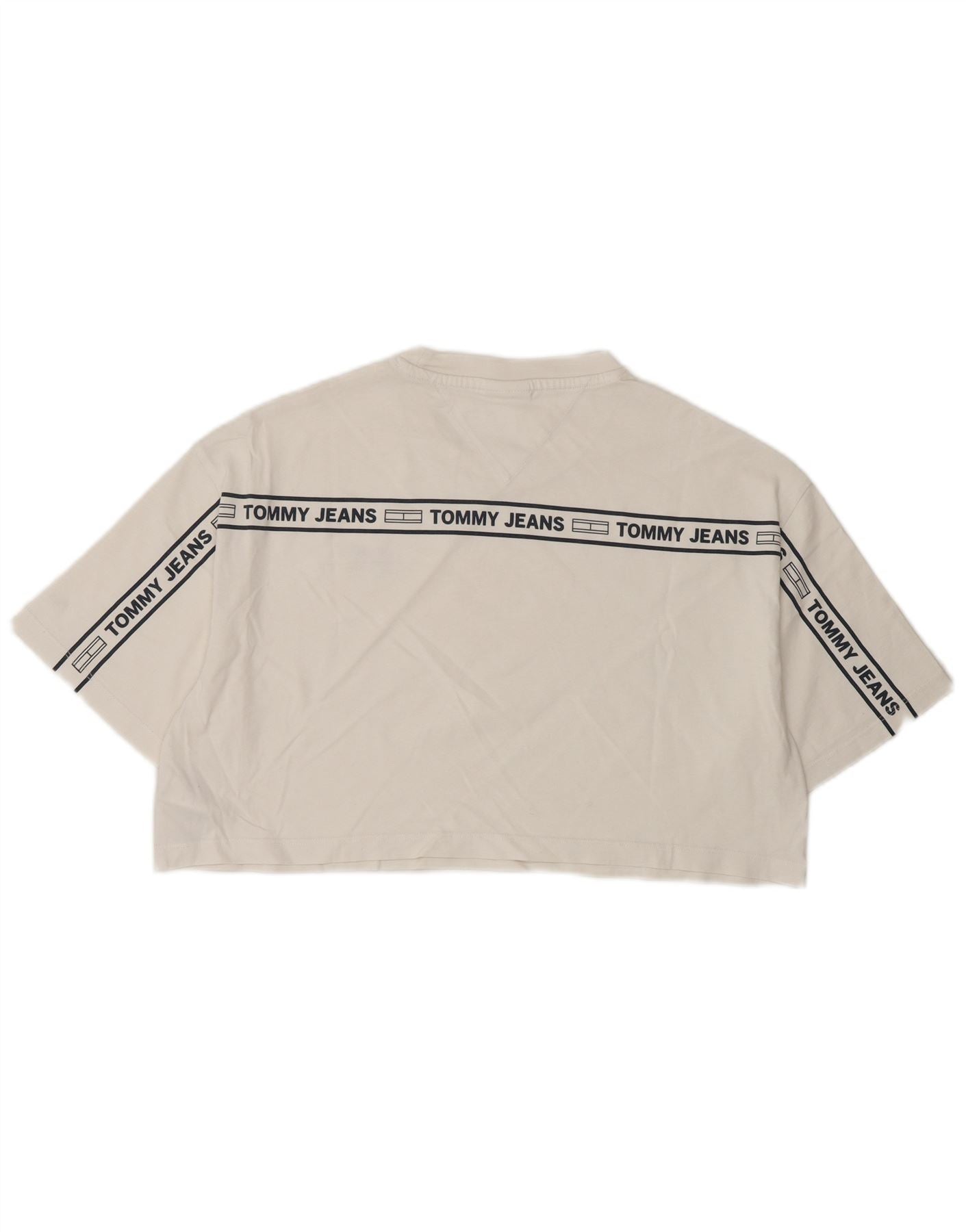 TOMMY HILFIGER Womens Crop Graphic T-Shirt Top UK 14 Medium White Cotton