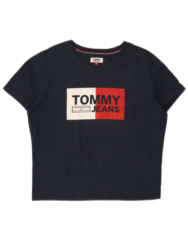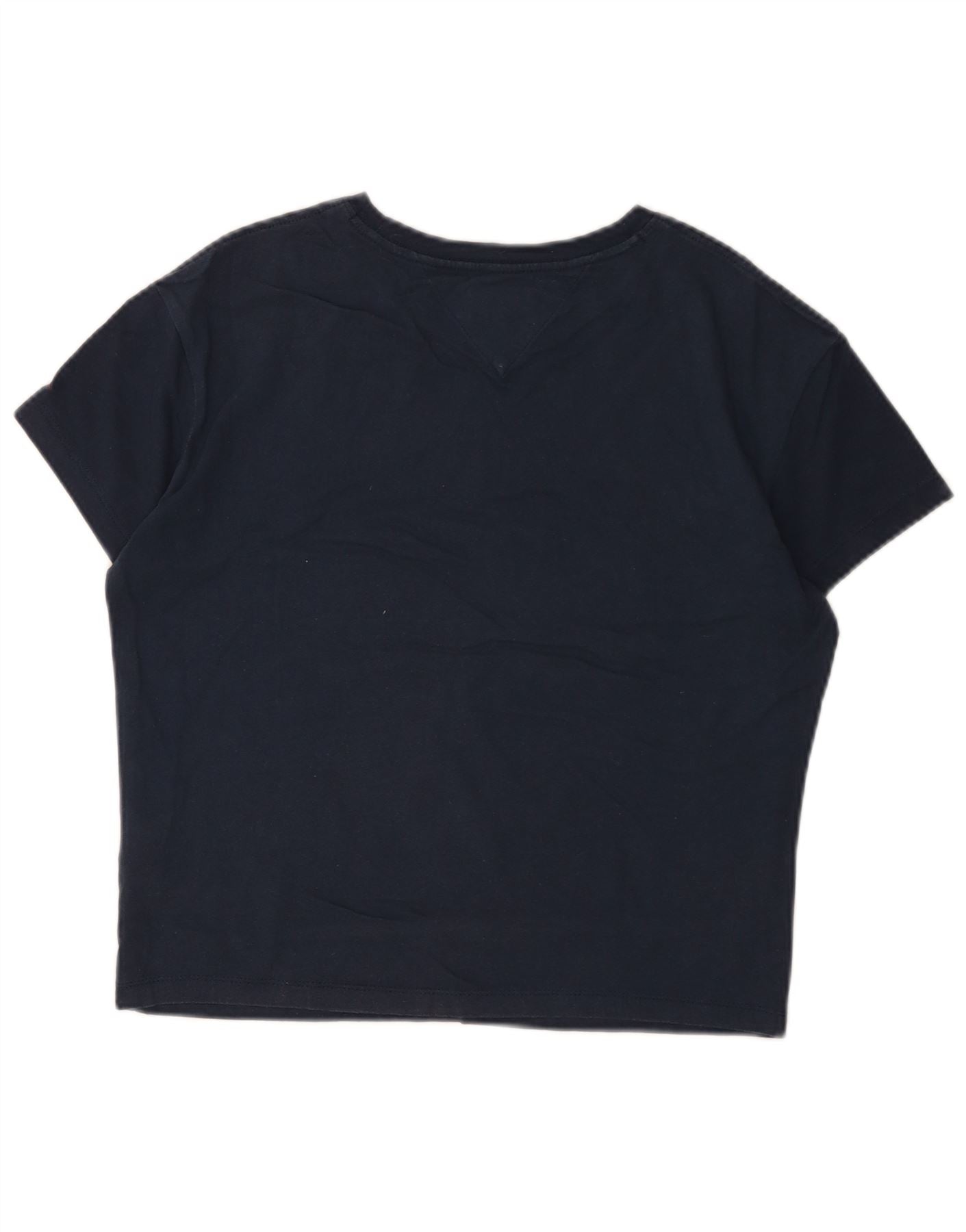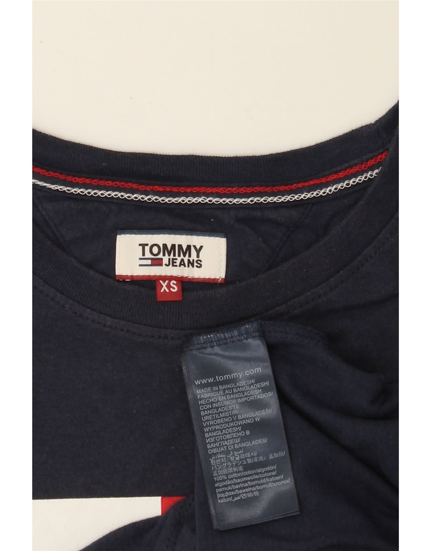 TOMMY HILFIGER Womens Crop Oversized Graphic T-Shirt Top UK 6 XS Navy Blue