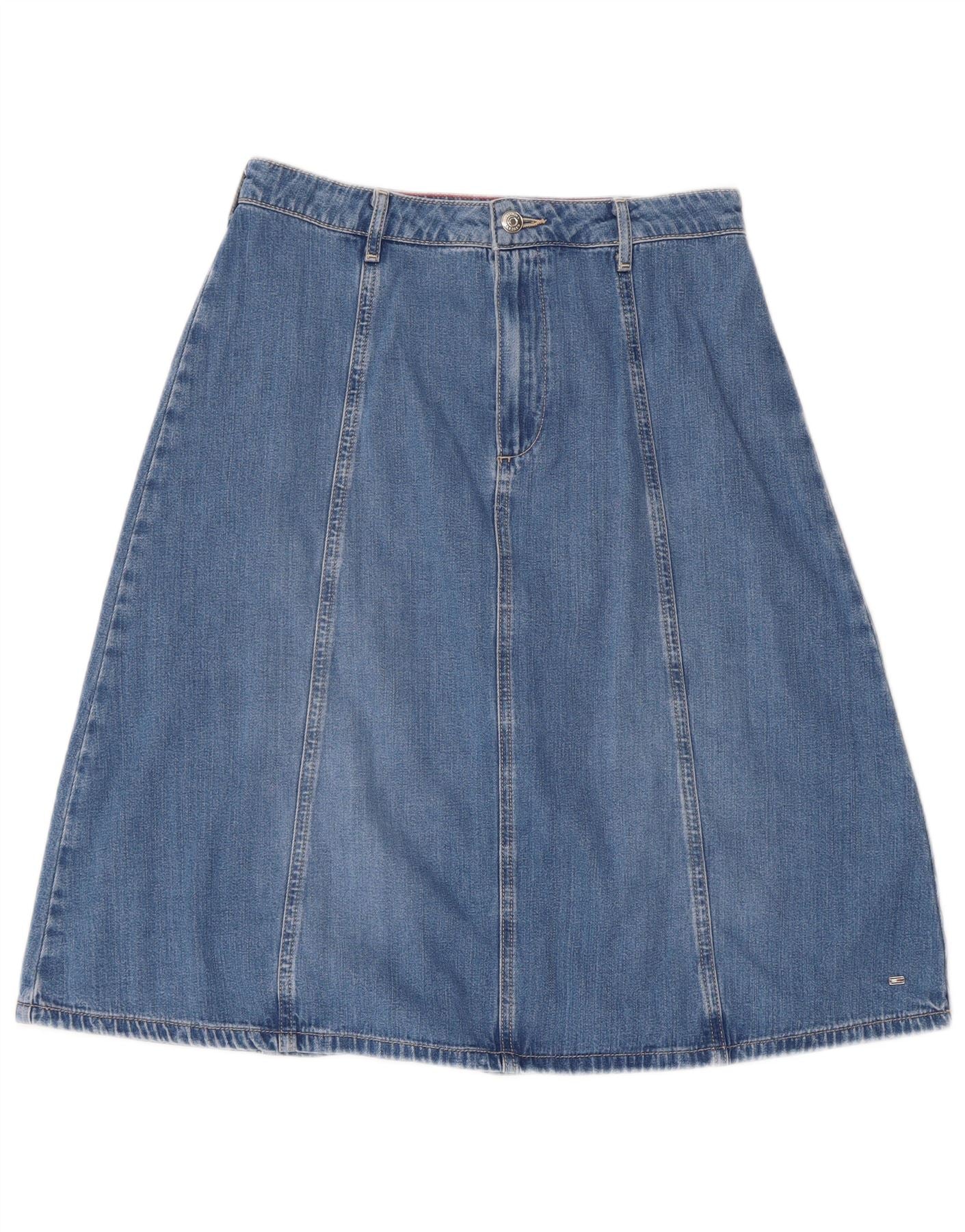 Saia jeans feminina TOMMY HILFIGER UK 8 pequena W28 algodão azul