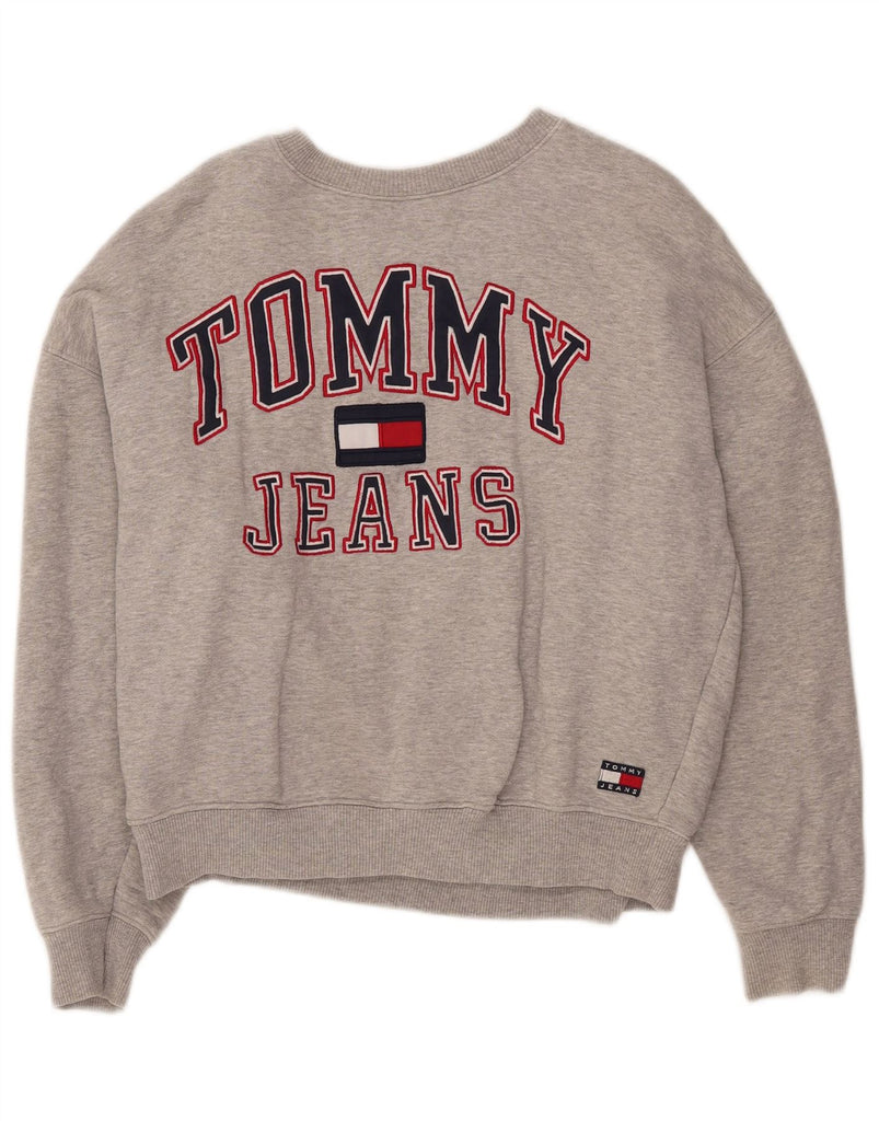 TOMMY HILFIGER Womens Graphic Oversized Sweatshirt Jumper UK 10 Small Grey