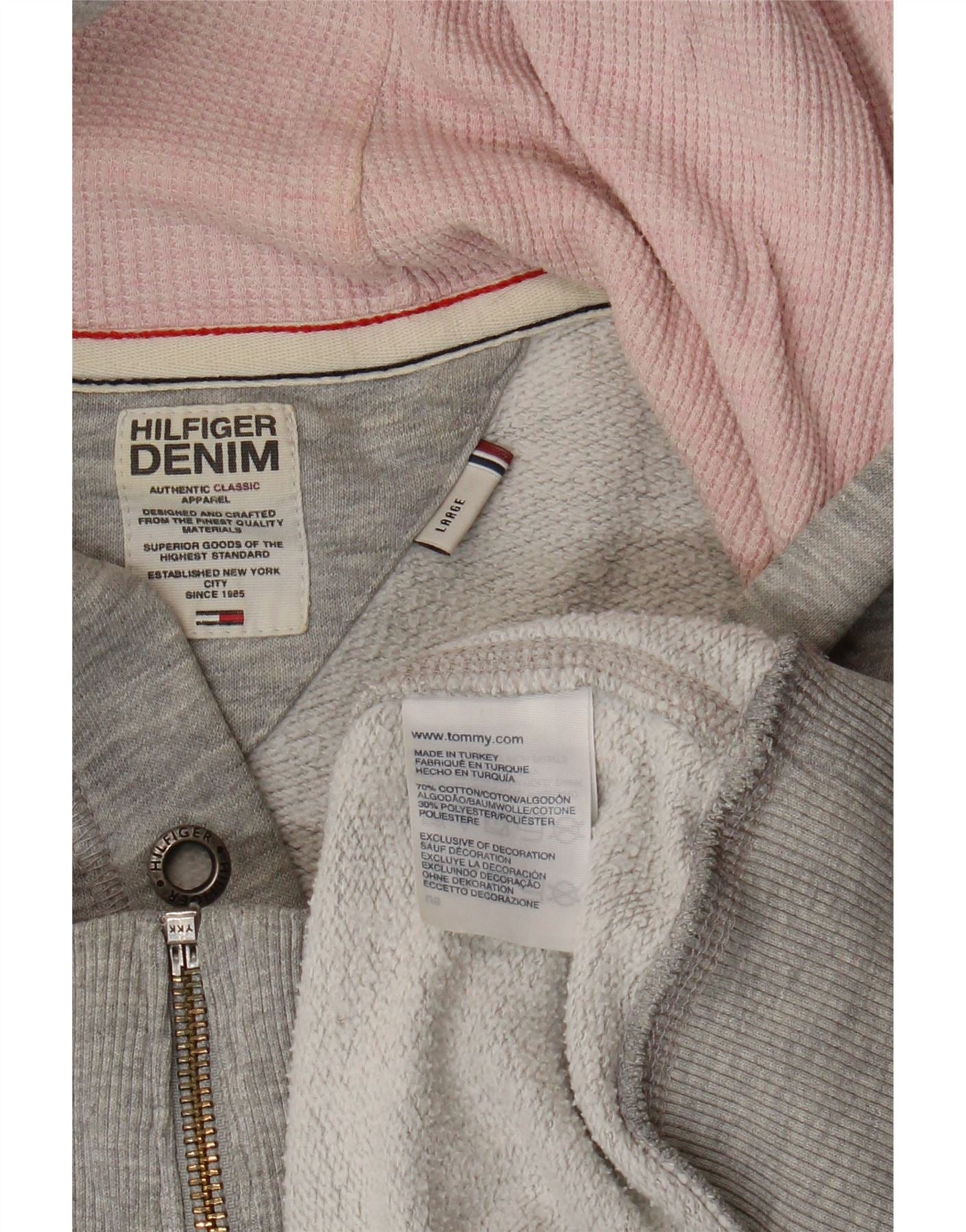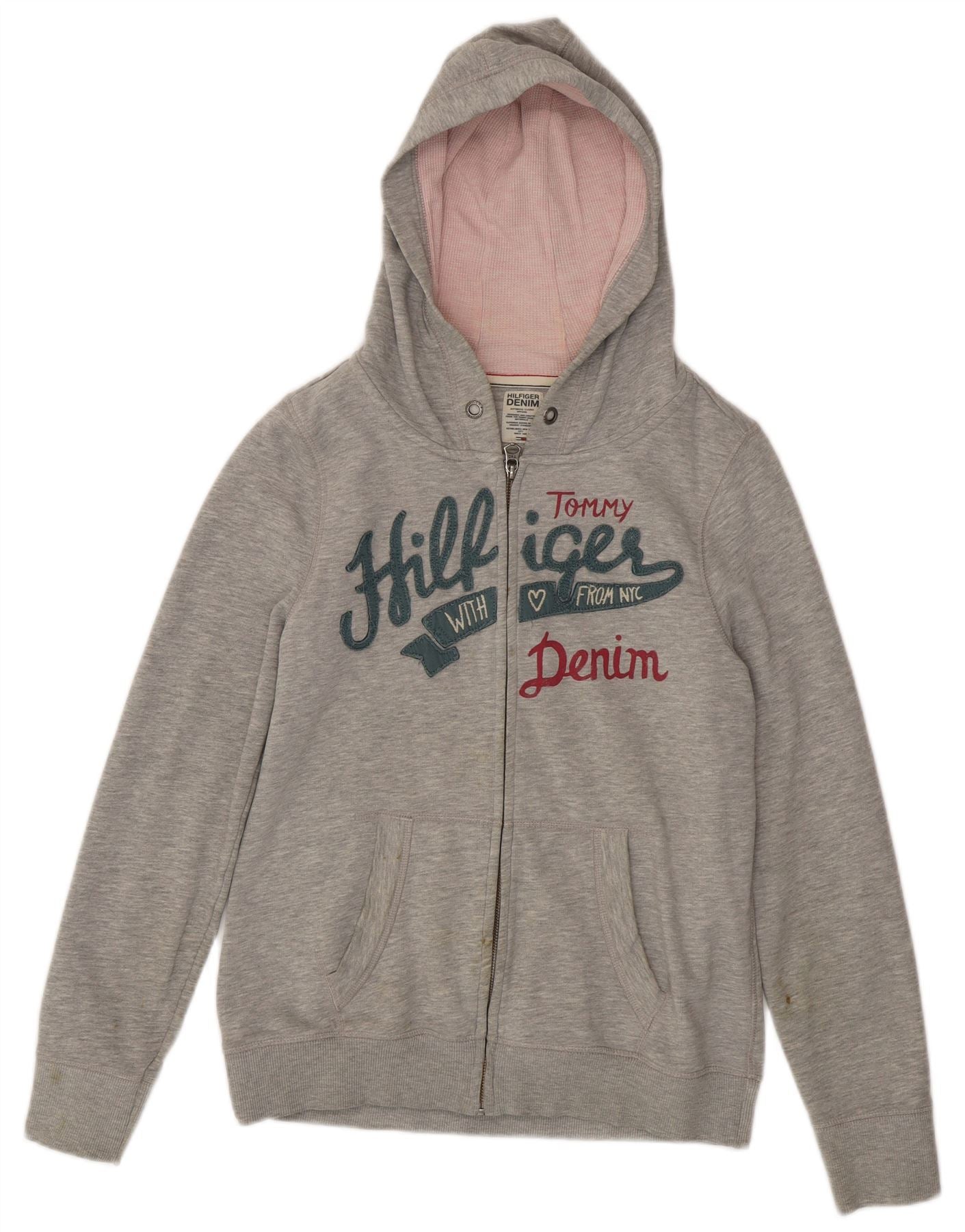 TOMMY HILFIGER Womens Graphic Zip Hoodie Sweater UK 16 Large Grey Cotton