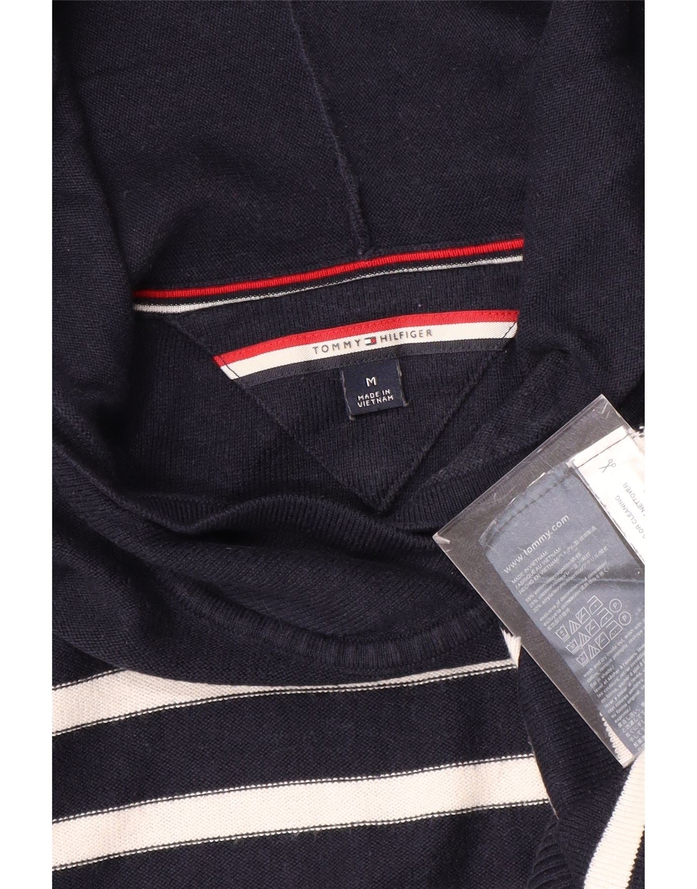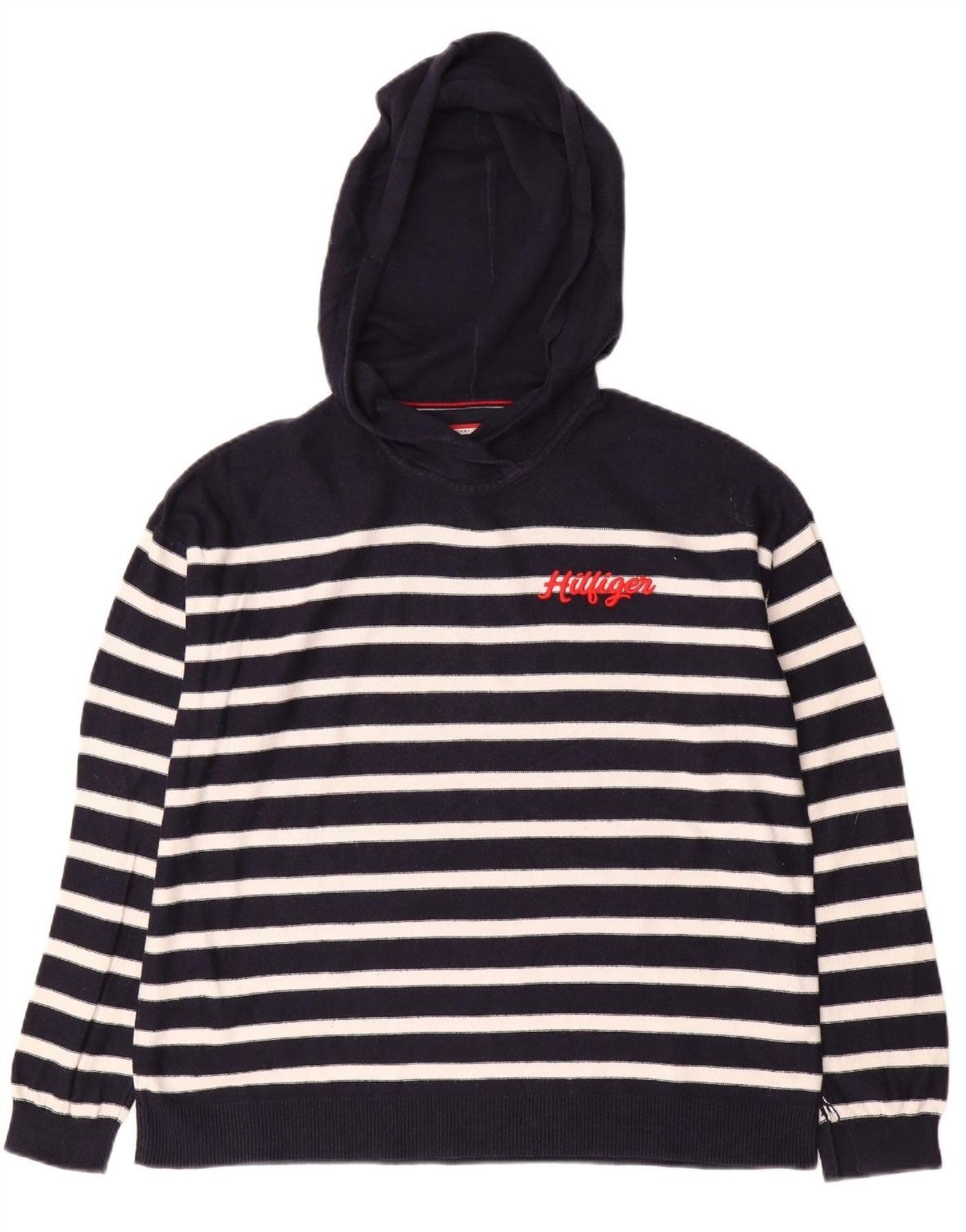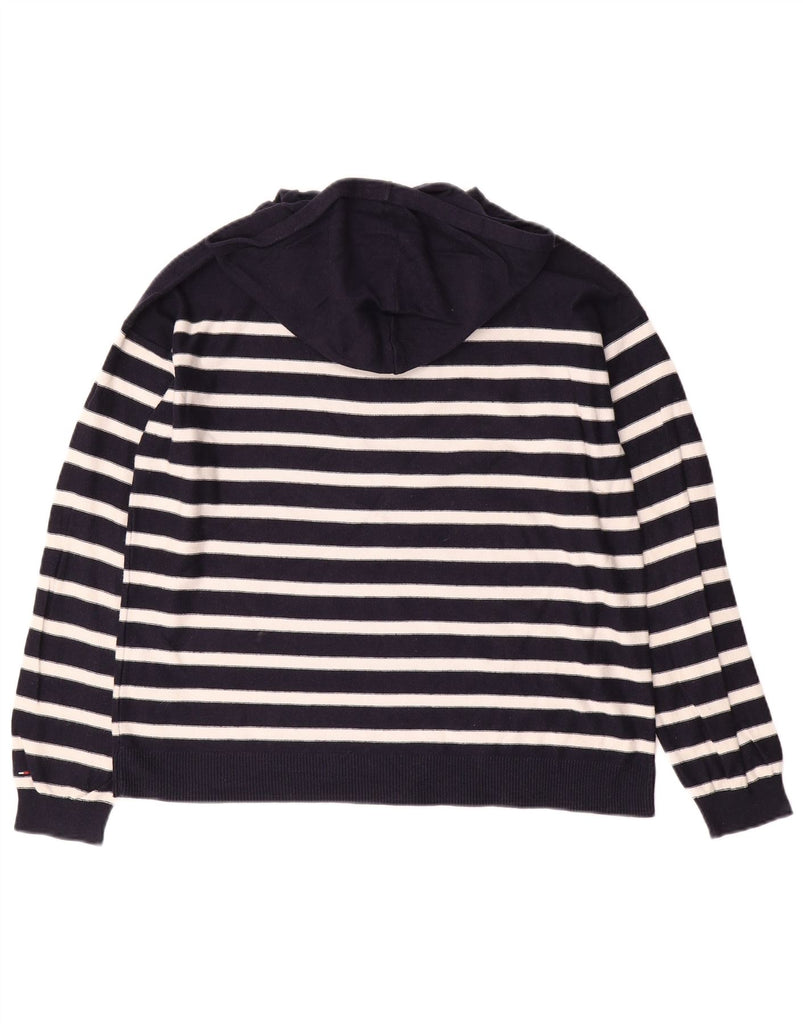 Suéter feminino TOMMY HILFIGER com capuz UK 14 listrado azul marinho médio