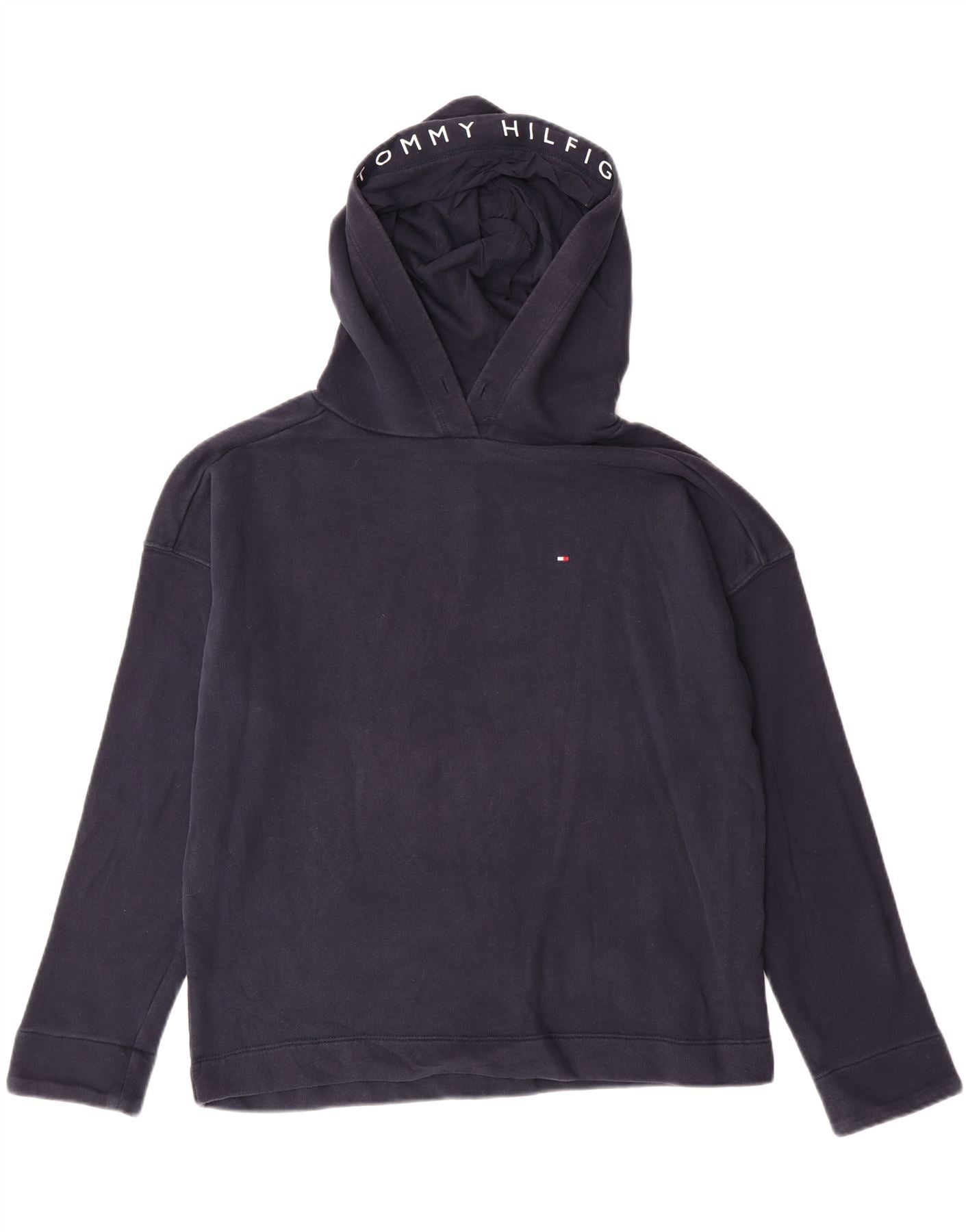 TOMMY HILFIGER Womens Hoodie Jumper UK 14 Medium Navy Blue Cotton