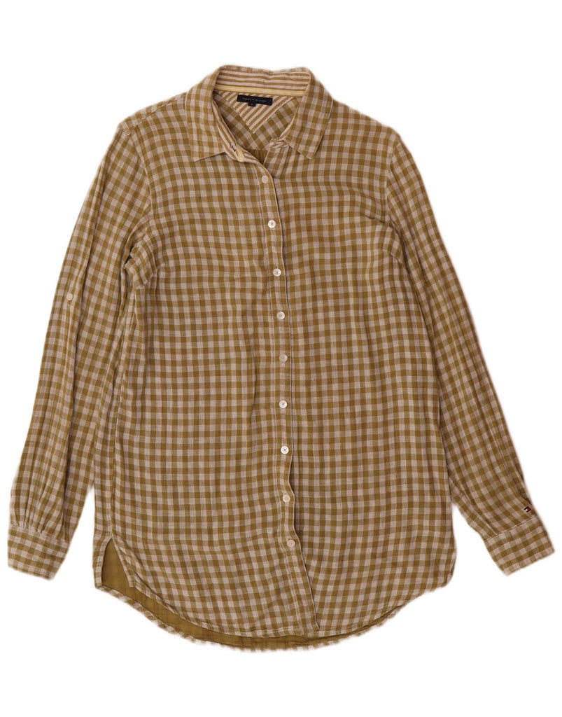 Camisa longa feminina TOMMY HILFIGER US 8 algodão guingão verde médio