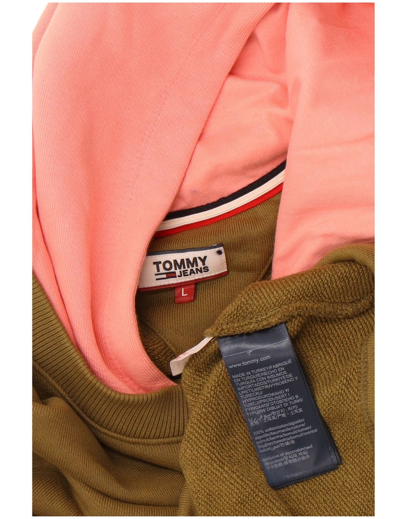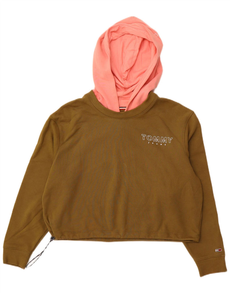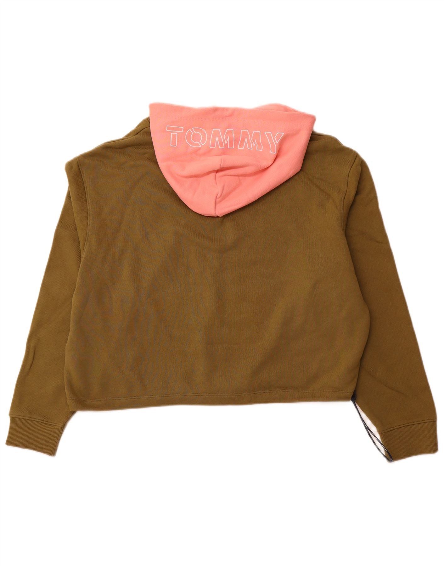 TOMMY HILFIGER Womens Oversized Crop Hoodie Jumper UK 16 Large Khaki
