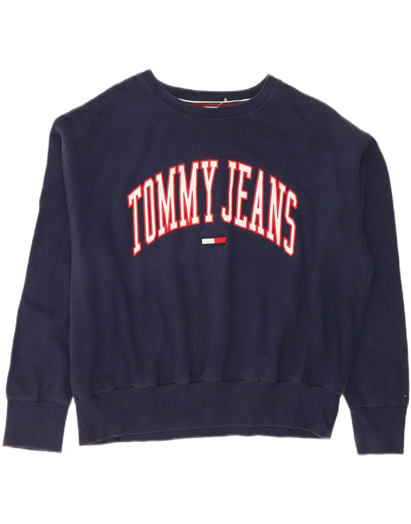 TOMMY HILFIGER Womens Oversized Sweatshirt Jumper UK 16 Large Navy Blue