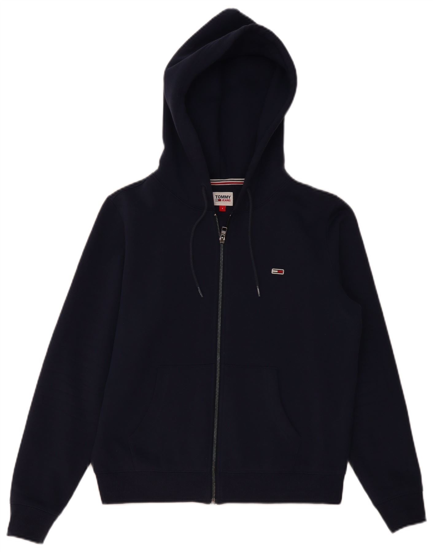 Suéter feminino TOMMY HILFIGER com capuz e zíper grande Reino Unido 10 pequeno azul marinho