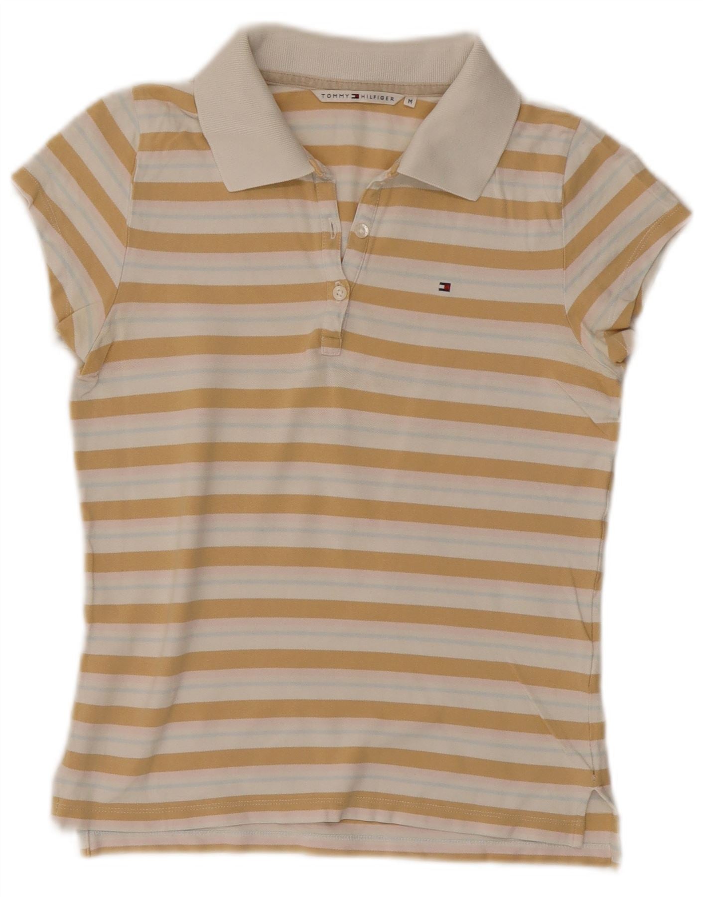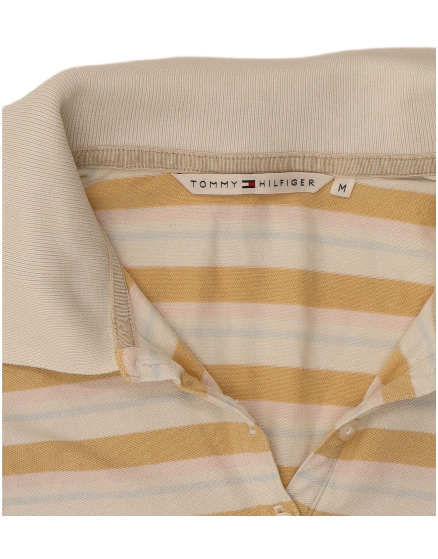 TOMMY HILFIGER Womens Polo Shirt UK 12 Medium Multicoloured Striped Cotton
