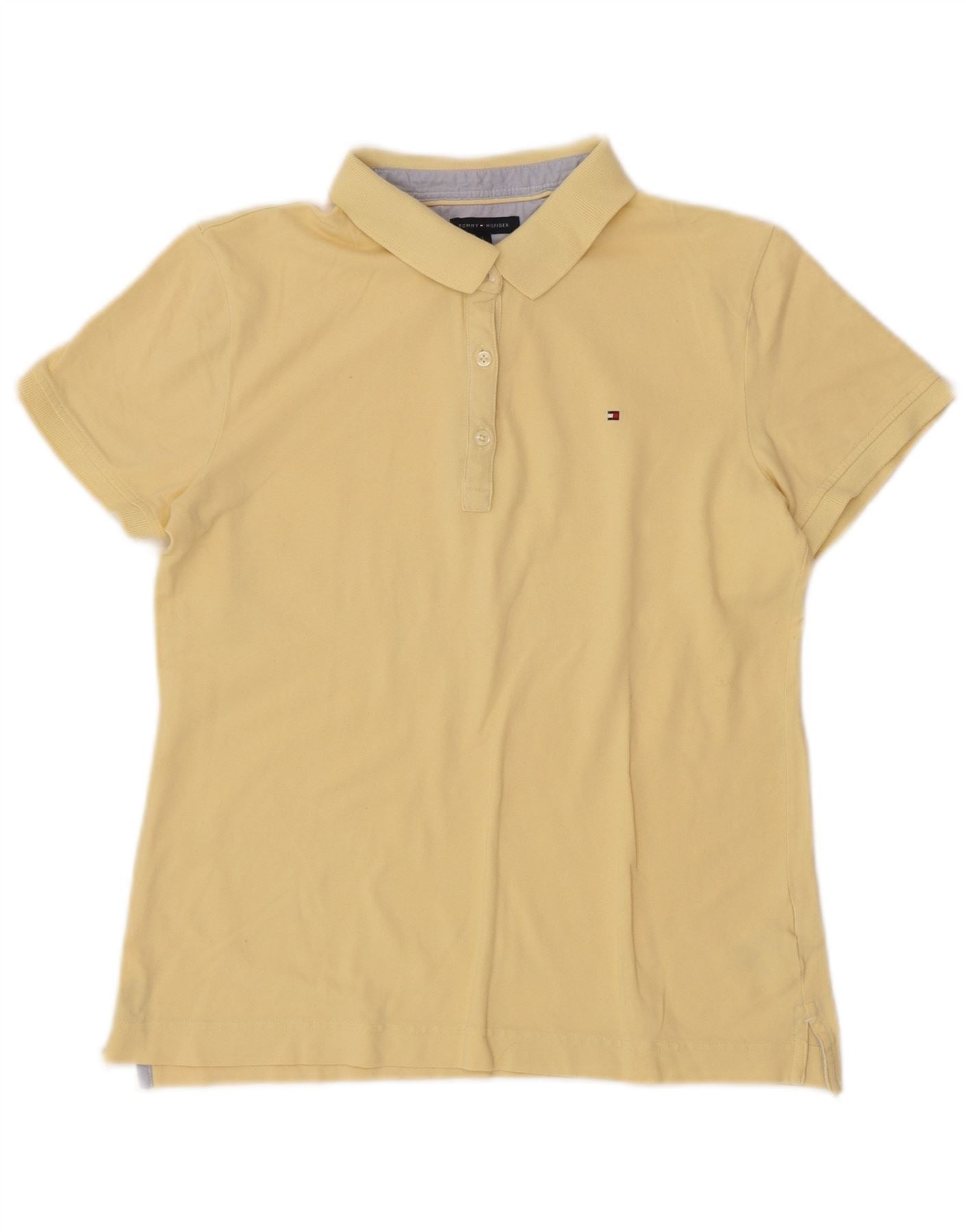 Camisa polo feminina TOMMY HILFIGER Reino Unido 14 grande algodão amarelo