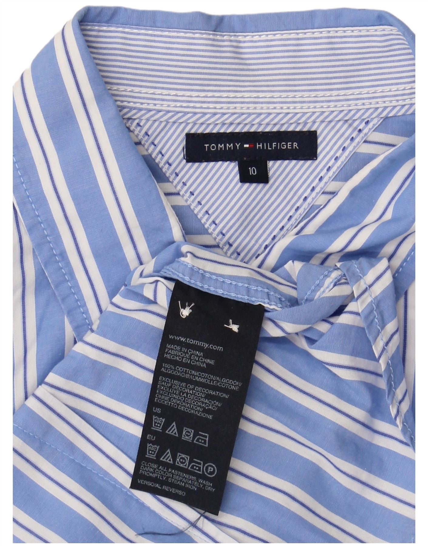 Camisa feminina TOMMY HILFIGER com babados na frente EUA 10 algodão listrado azul grande