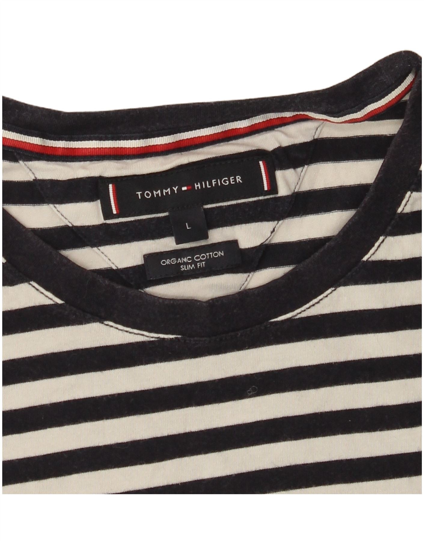 Camiseta feminina TOMMY HILFIGER Slim Fit UK 14 grande listrada preta