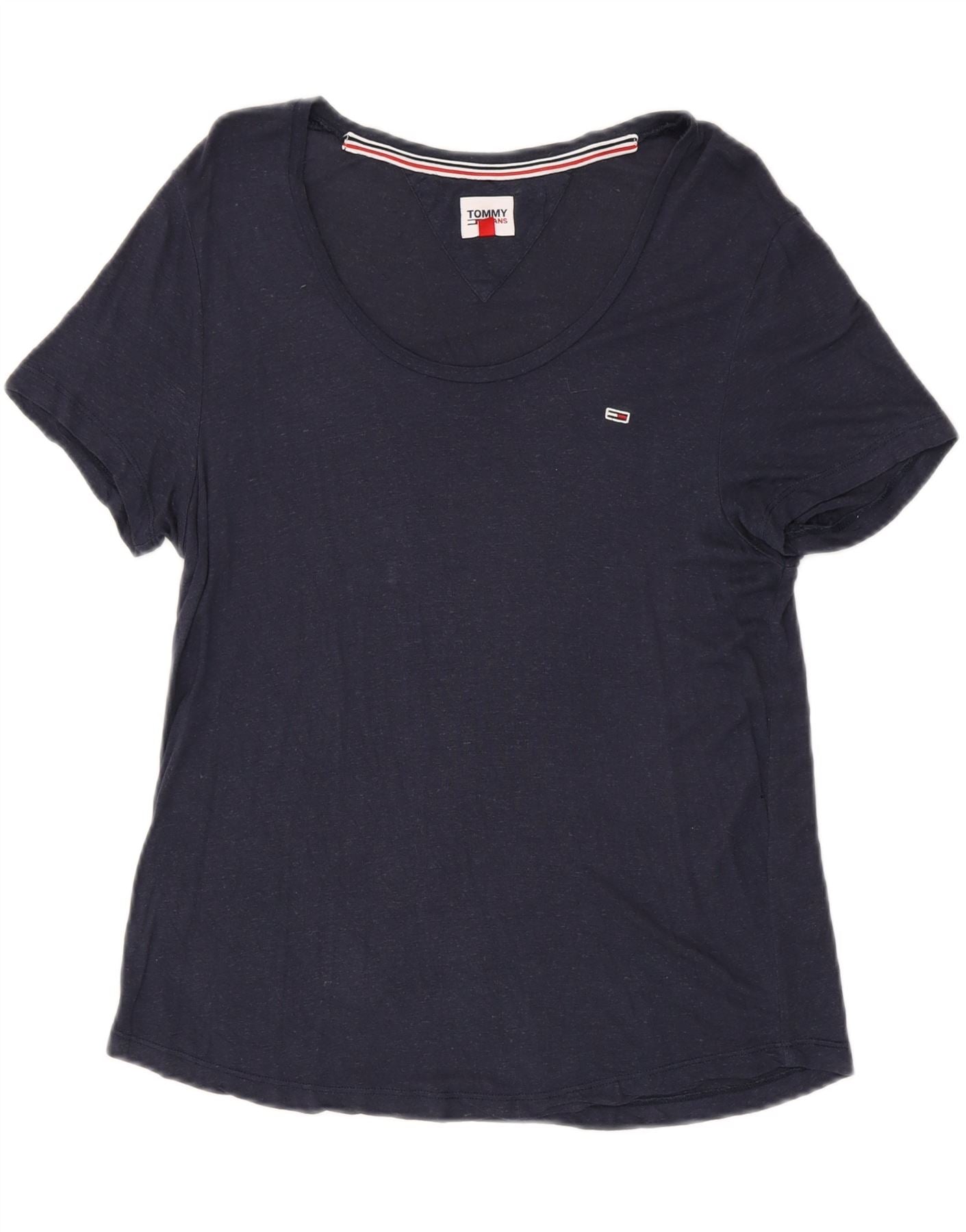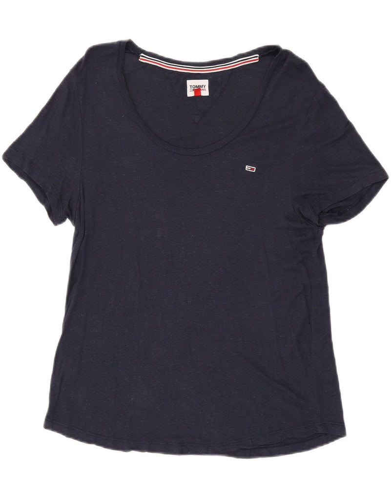 TOMMY HILFIGER Womens T-Shirt Top UK 12 Medium Navy Blue Flecked
