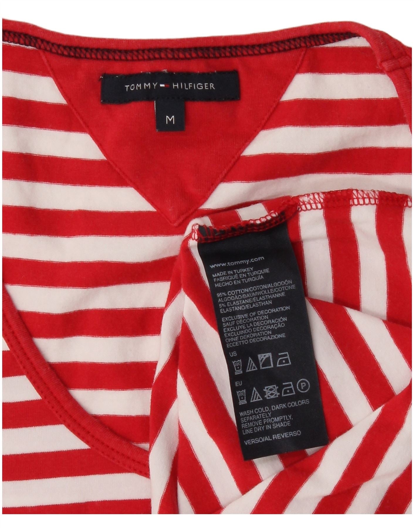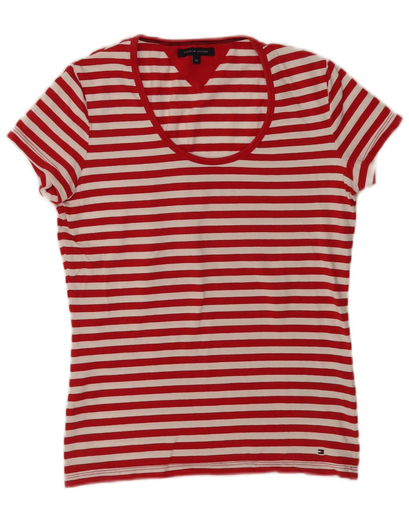 TOMMY HILFIGER Womens T-Shirt Top UK 12 Medium Red Striped Cotton