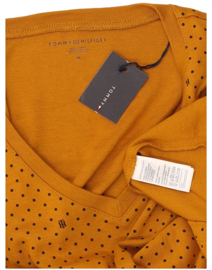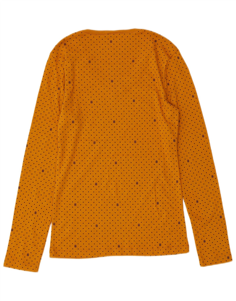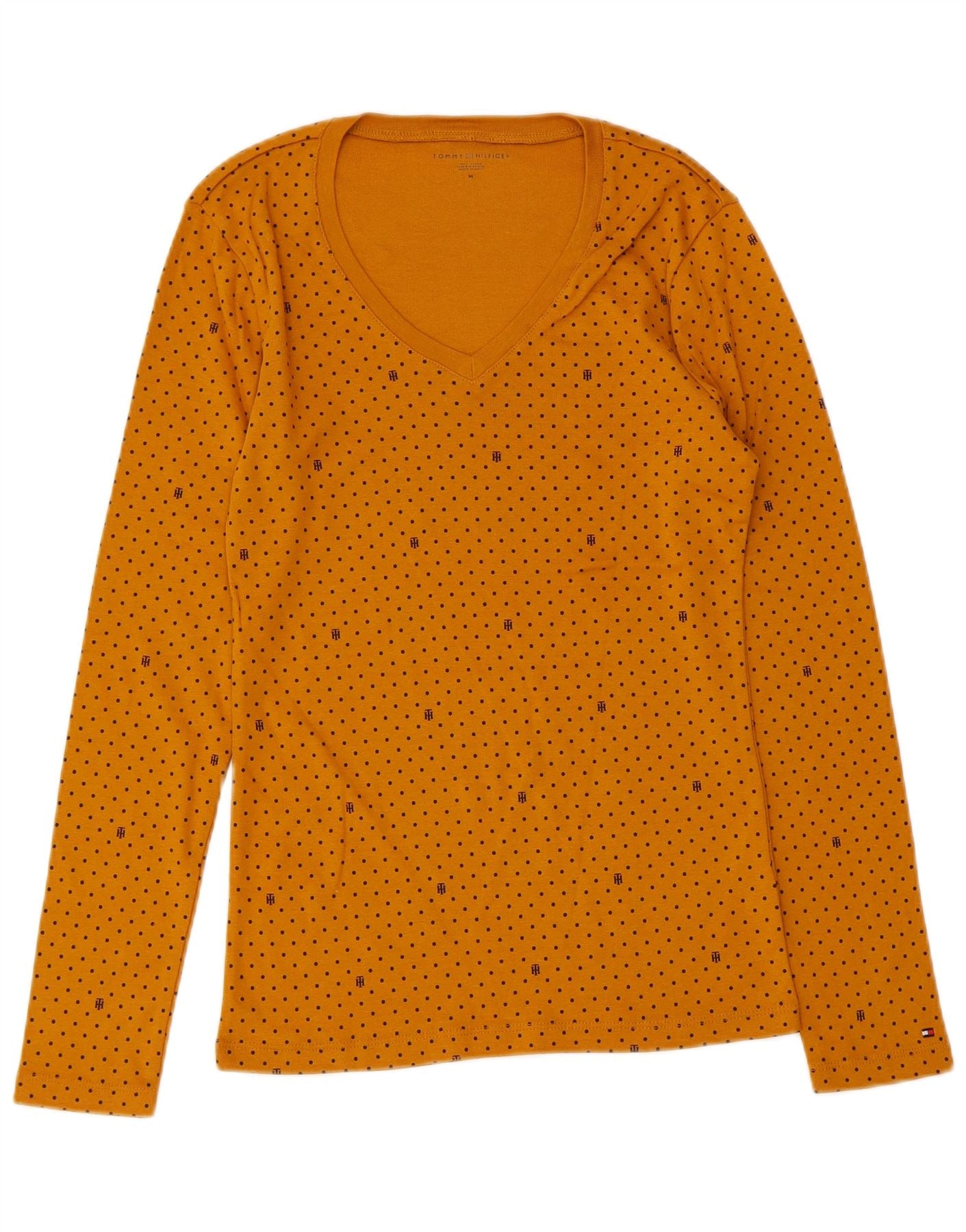 TOMMY HILFIGER Womens Top Long Sleeve UK 12 Medium Yellow Spotted Cotton