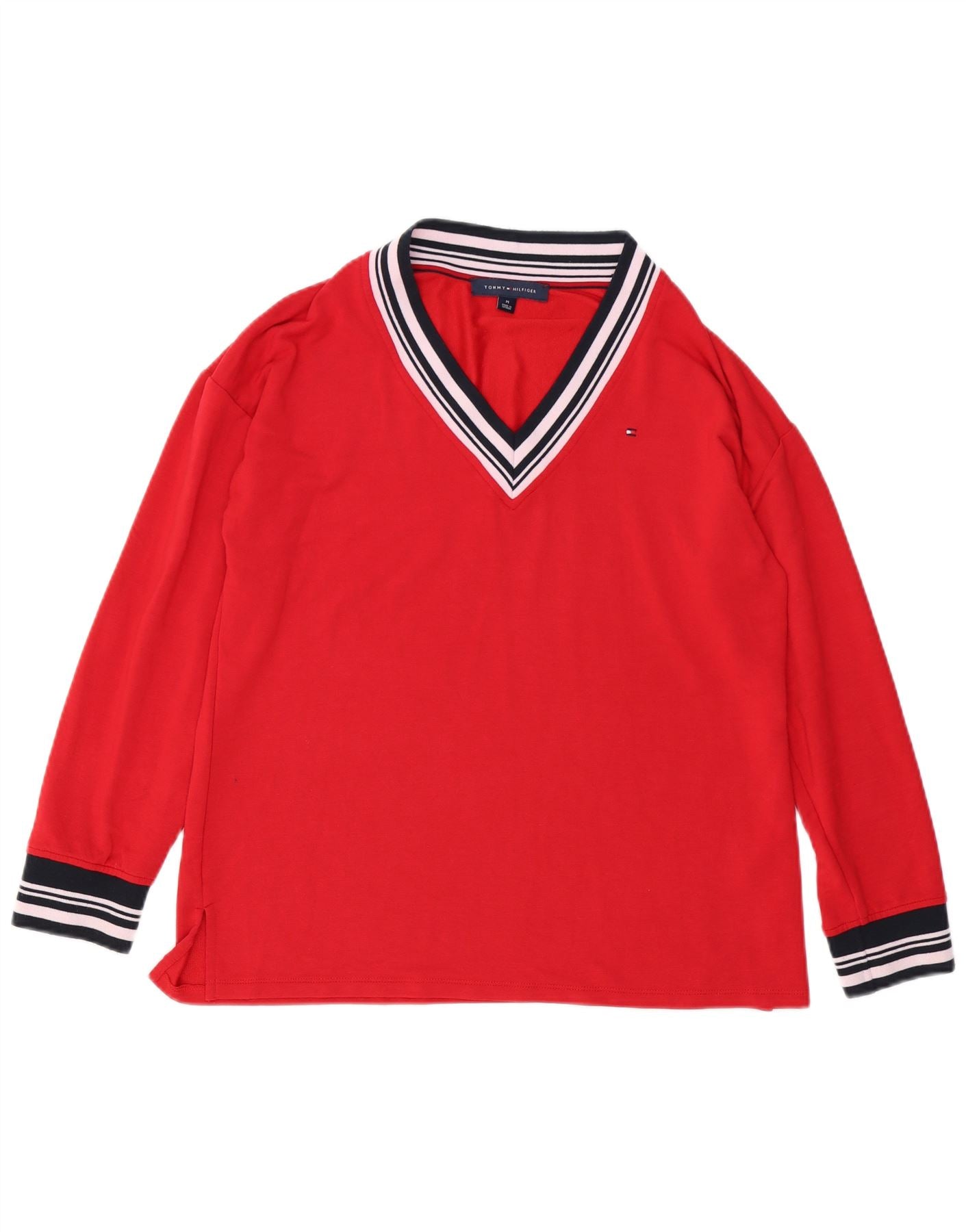 Top feminino TOMMY HILFIGER manga comprida UK 14 viscose vermelha média