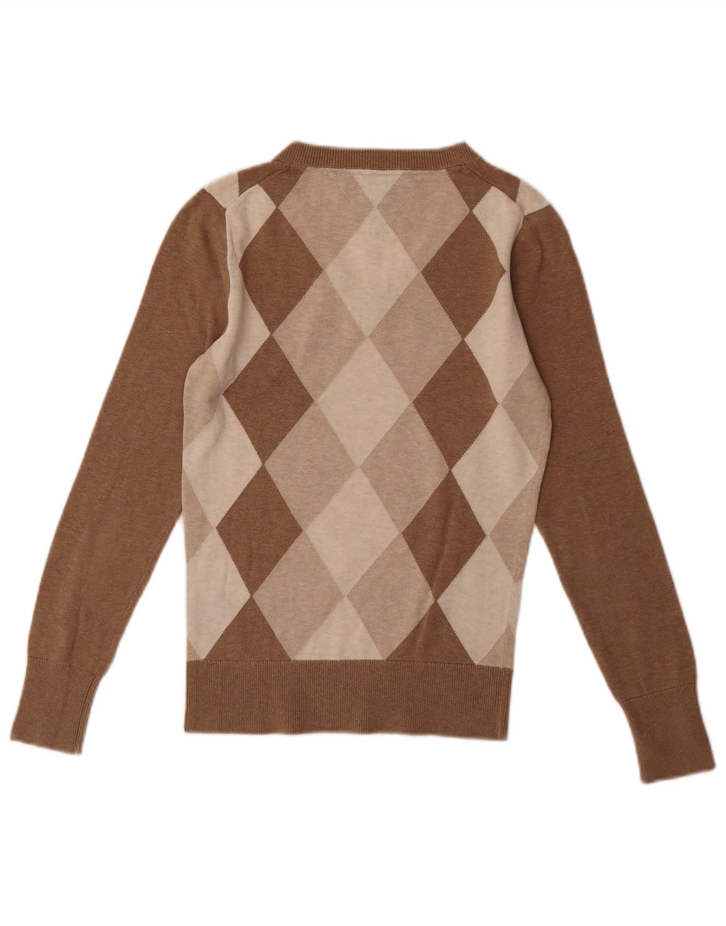 Suéter feminino TOMMY HILFIGER com decote em V Reino Unido 10 pequeno marrom