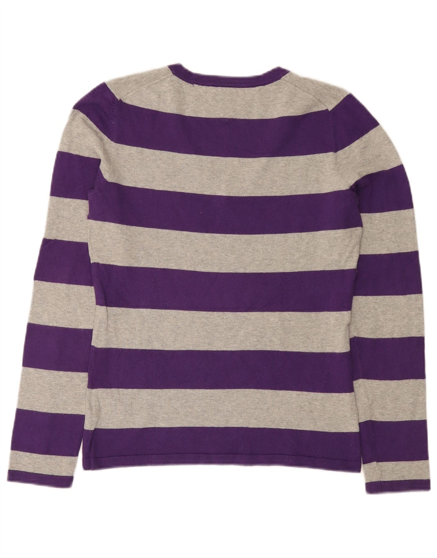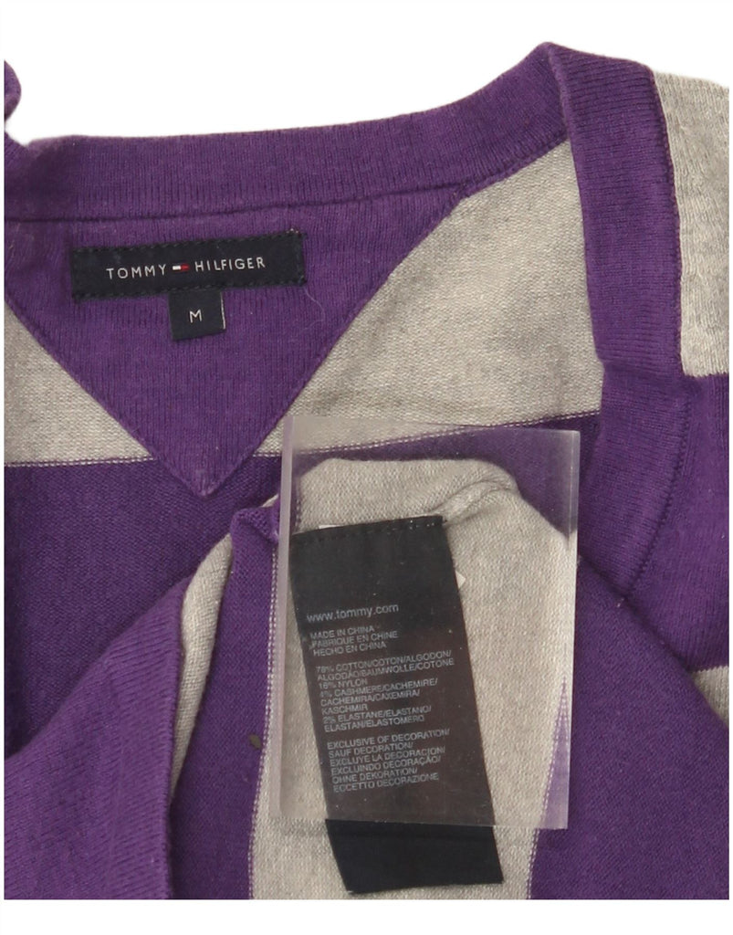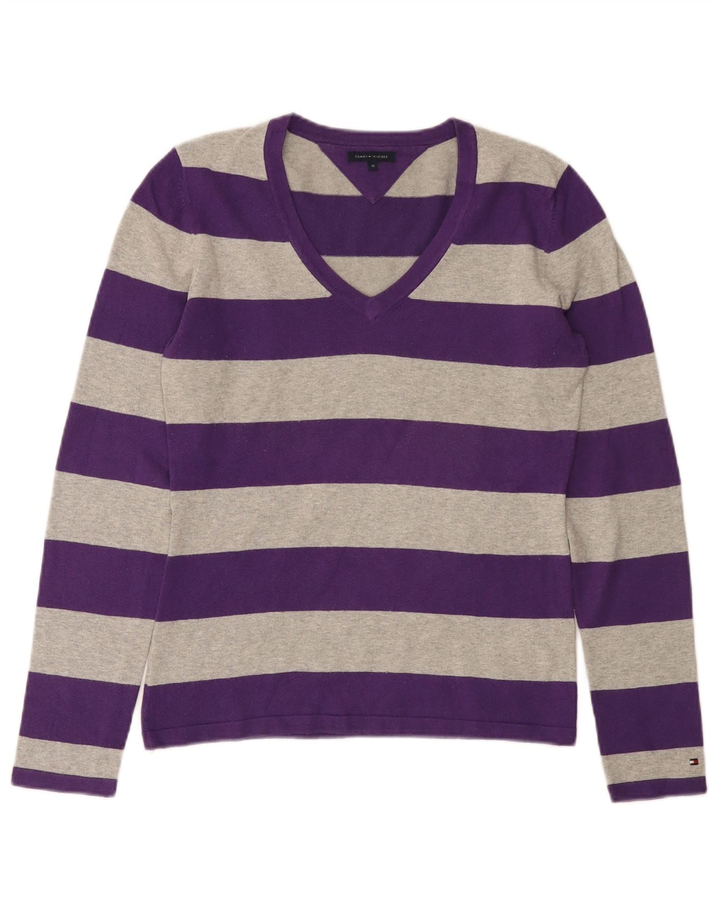 TOMMY HILFIGER Womens V-Neck Jumper Sweater UK 12 Medium Purple Striped