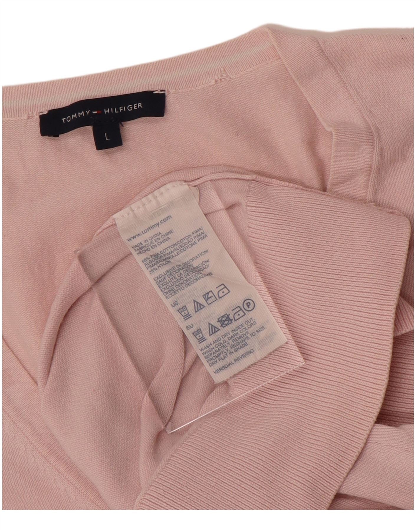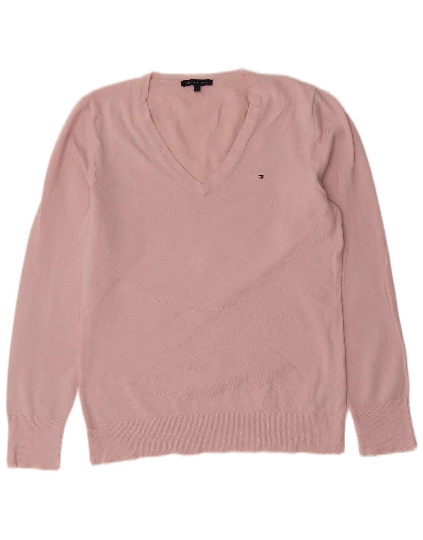 TOMMY HILFIGER Womens V-Neck Jumper Sweater UK 14 Large Pink Cotton