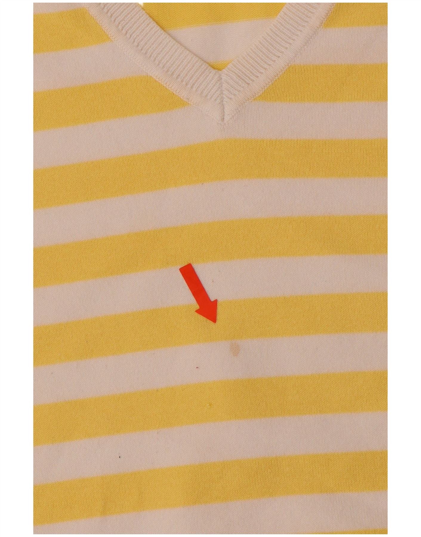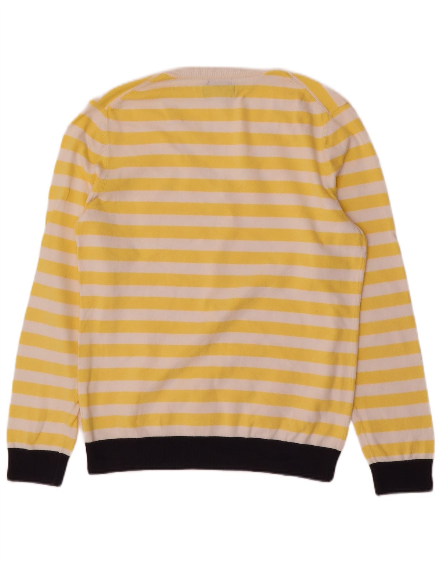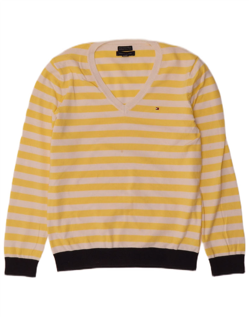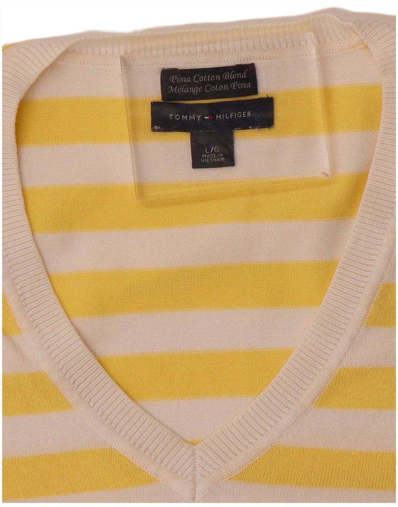 TOMMY HILFIGER Womens V-Neck Jumper Sweater UK 14 Large Yellow Striped