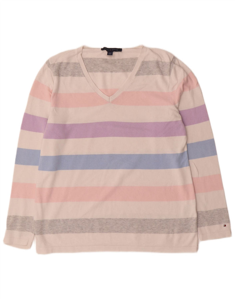 TOMMY HILFIGER Womens V-Neck Jumper Sweater UK 16 Large Multicoloured