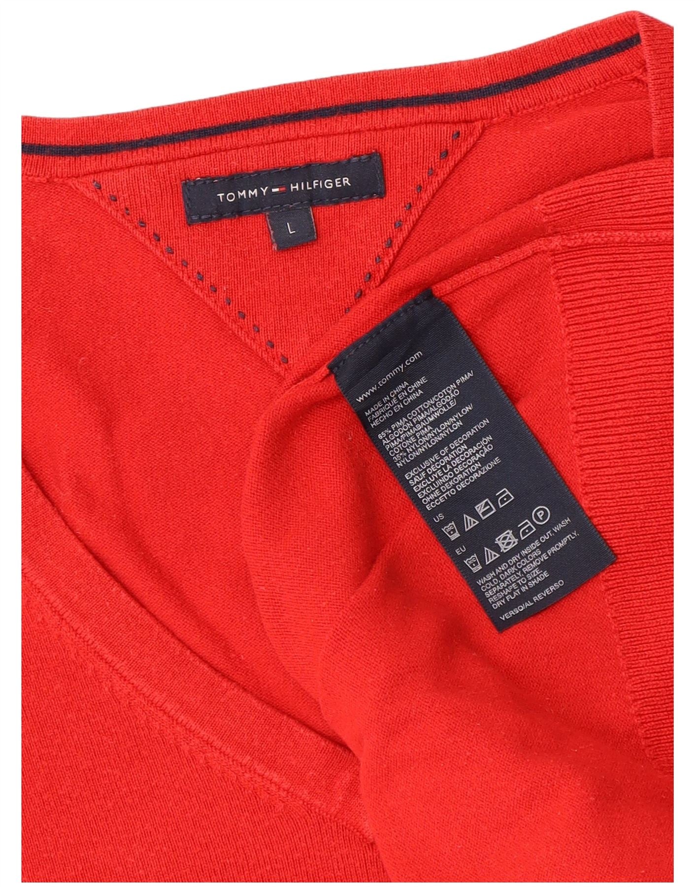 TOMMY HILFIGER Womens V-Neck Jumper Sweater UK 16 Large Red Cotton