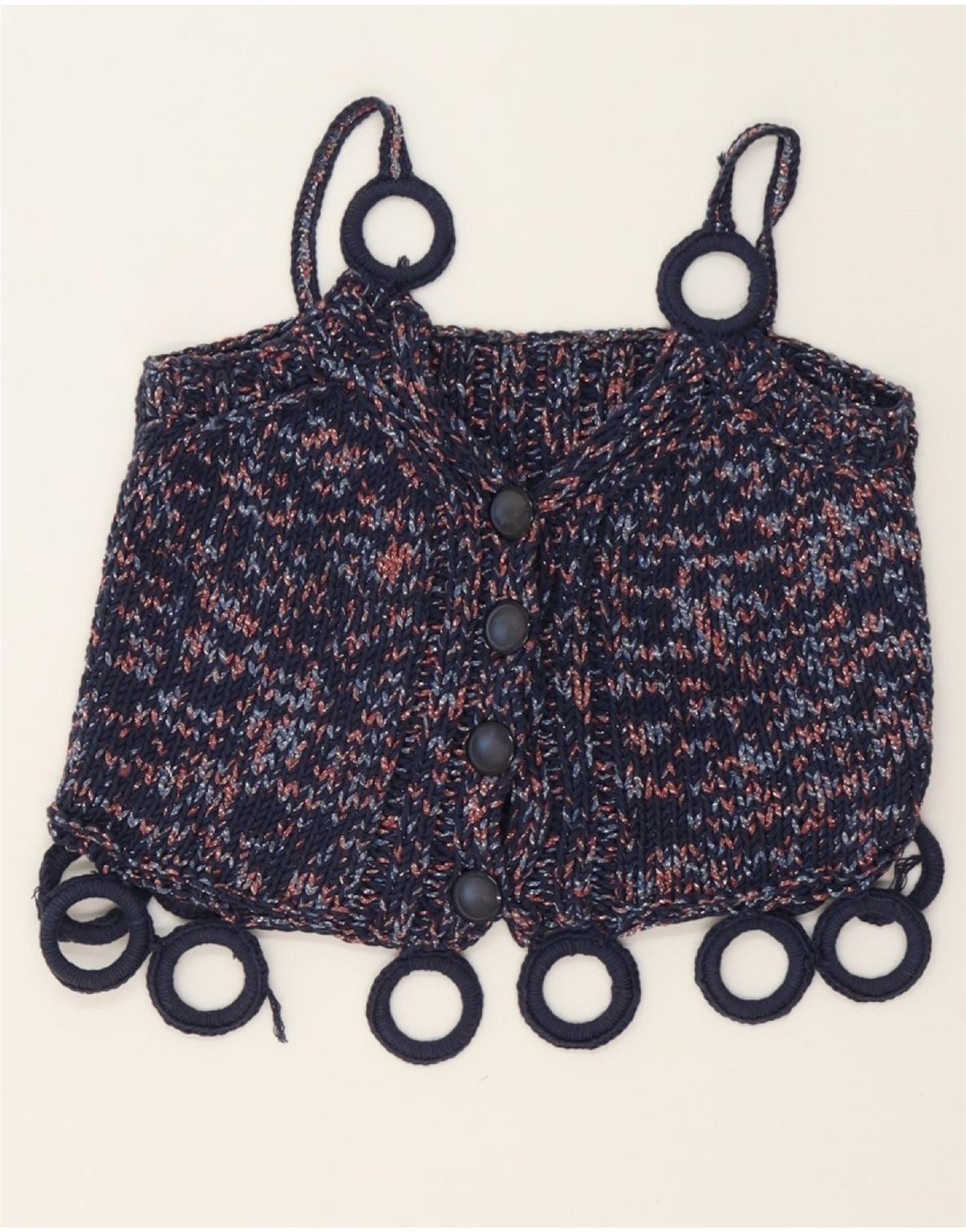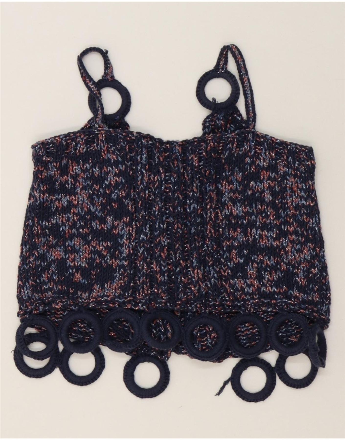 Top Cami feminino de malha VINTAGE Reino Unido 10 pequeno azul marinho manchado
