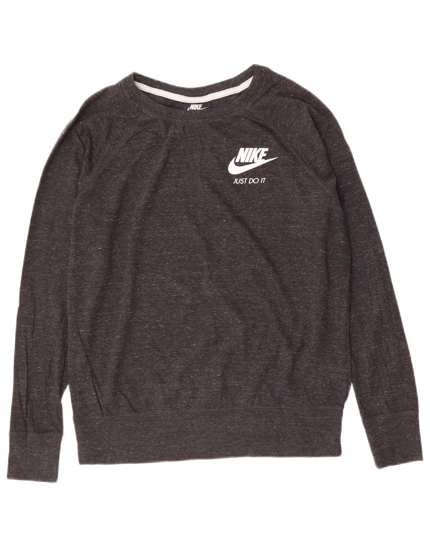 Top feminino Nike de manga comprida UK 14 cinza médio manchado de algodão