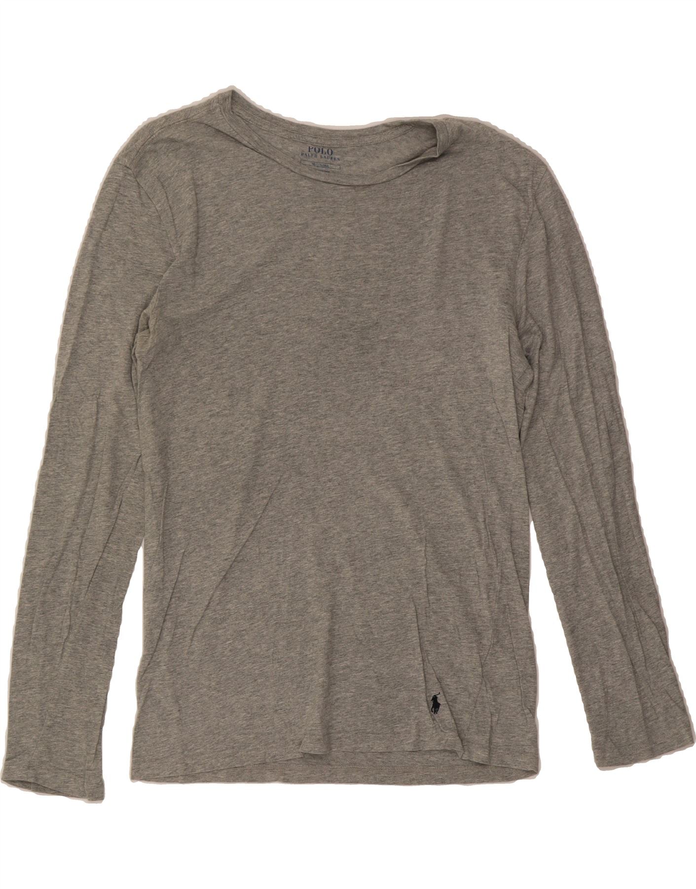 Top feminino POLO RALPH LAUREN manga comprida UK 12 algodão cinza médio