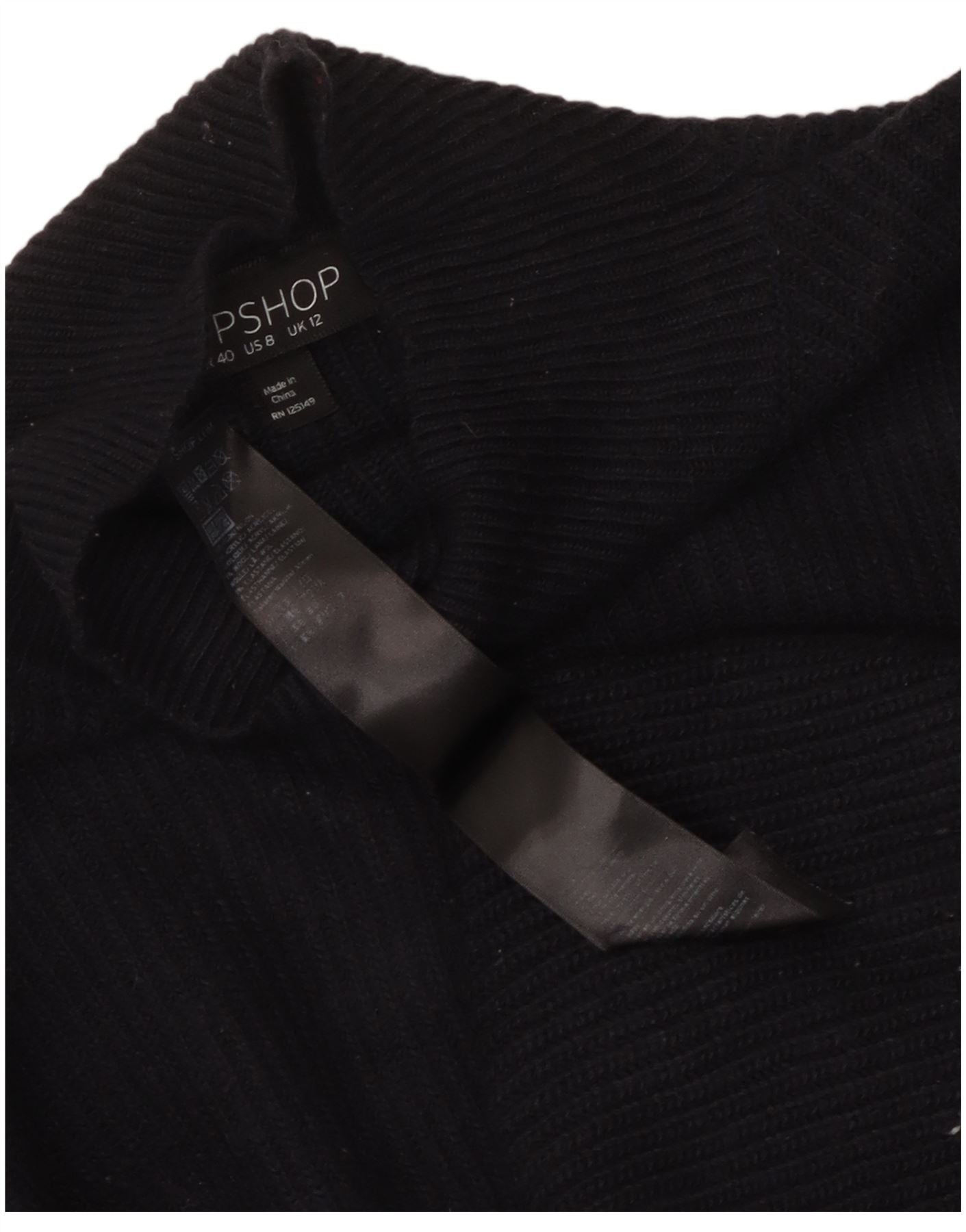 Suéter feminino Topshop com gola tartaruga e gola alta Reino Unido 12 médio azul marinho nylon