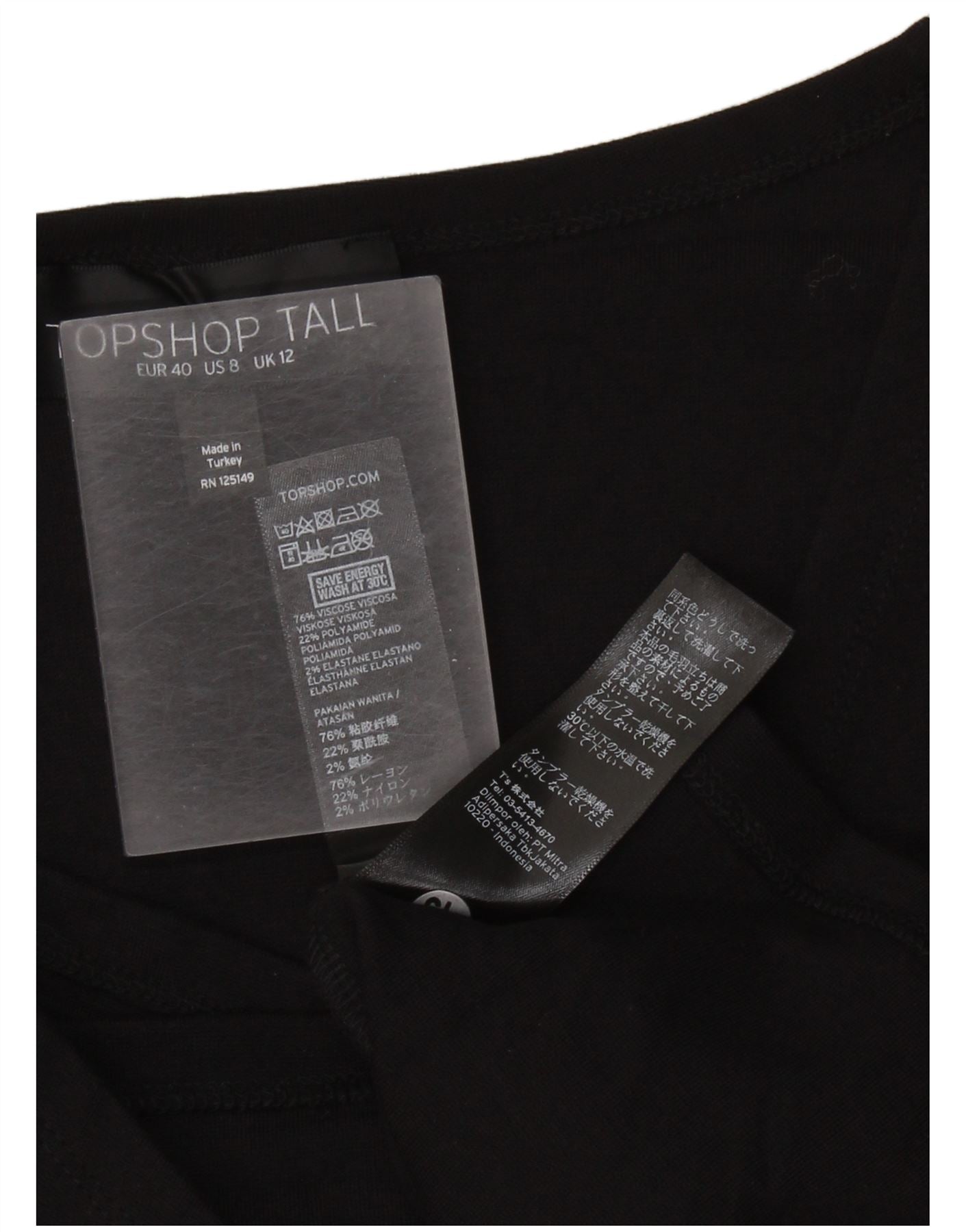 - Composição exata do material: 76% Viscose, 22% Poliamida, 2% Elastano