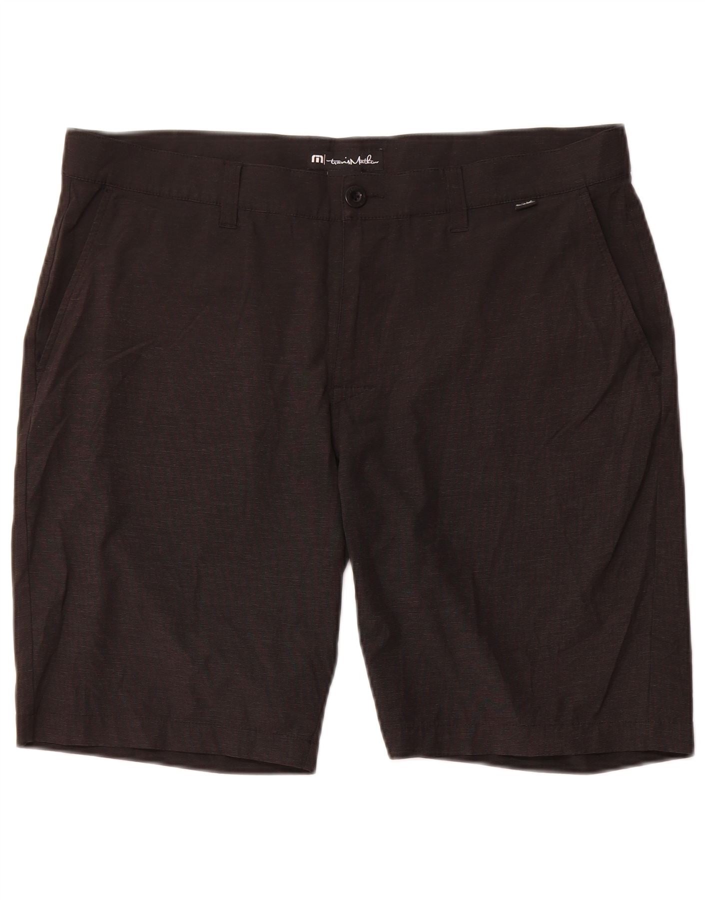 Travis Mathew Mens Chino Shorts W38 XL Preto Risca de Giz Poliéster