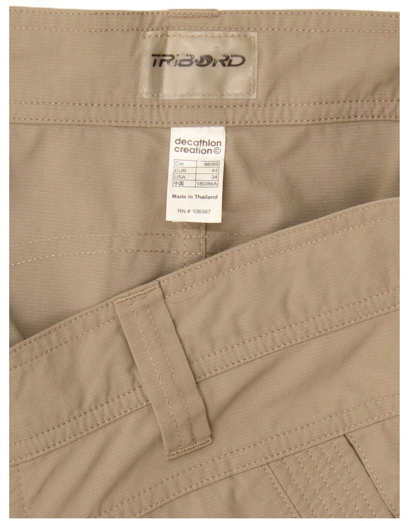 TRIBORD Womens Straight Capri Trousers EU 44 Large W36 L20 Beige Polyamide