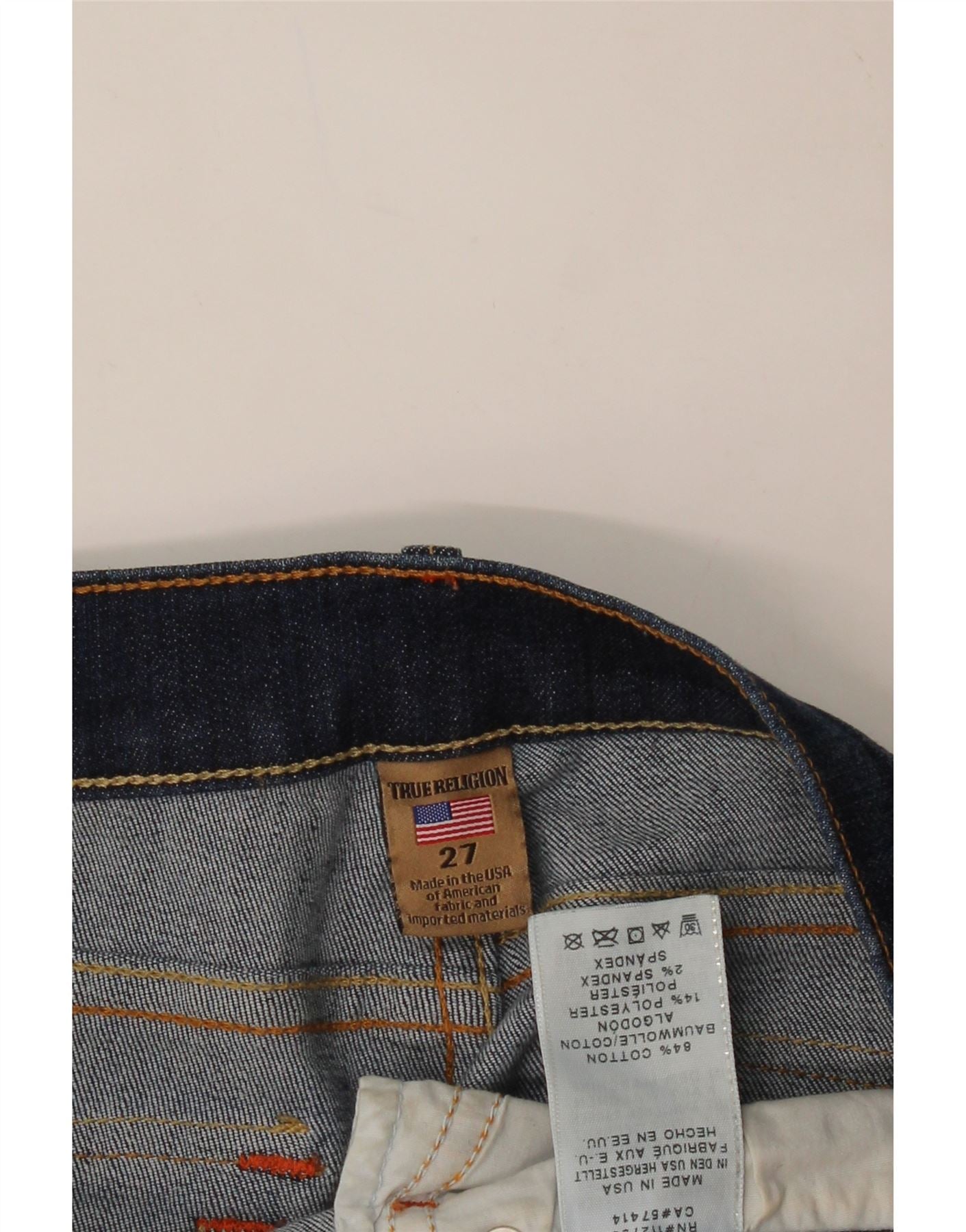 TRUE RELIGION Calça jeans feminina bootcut W27 L29 algodão azul