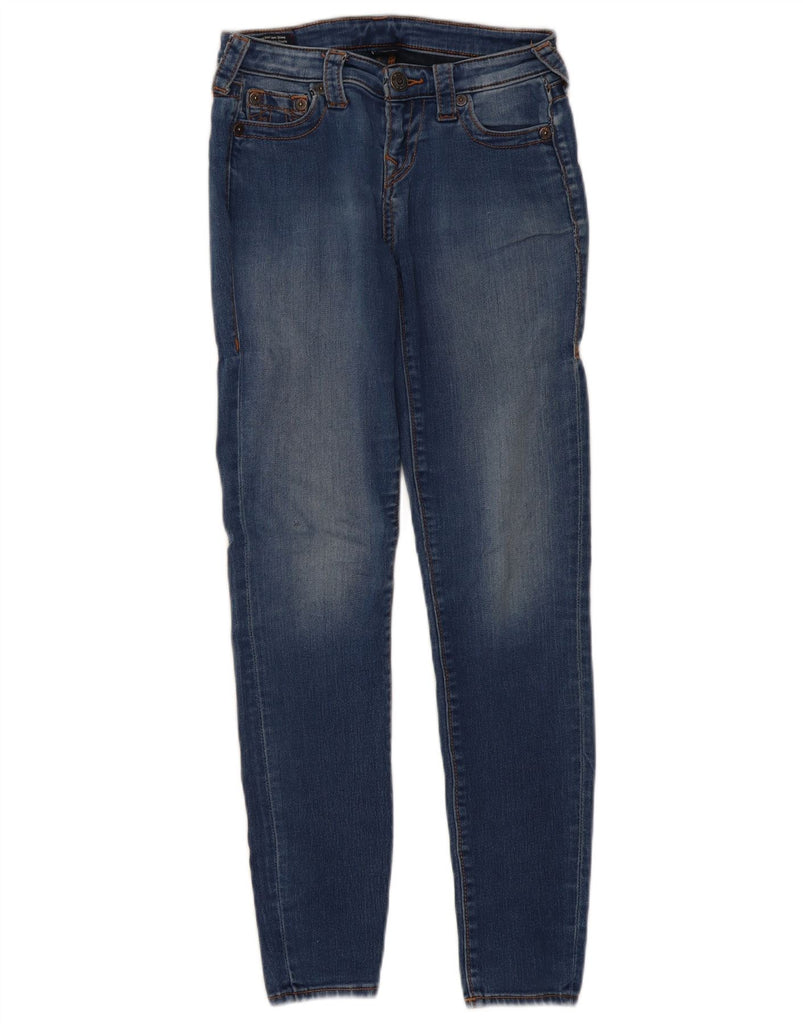 TRUE RELIGION Calça jeans feminina cintura média super skinny W26 L29 algodão azul