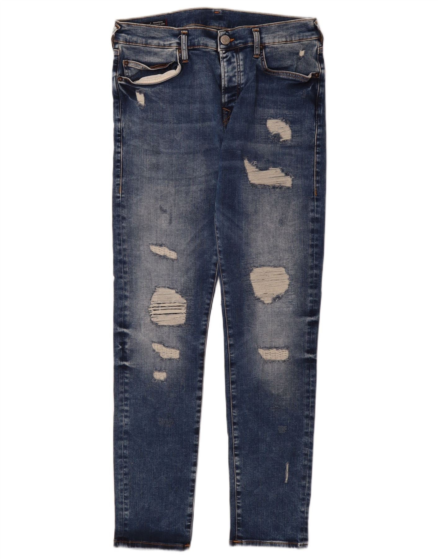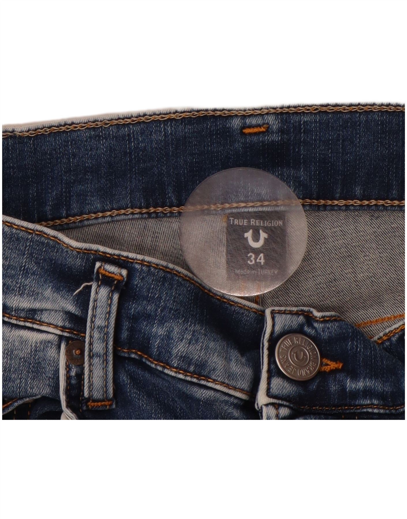 TRUE RELIGION Calça jeans skinny masculina desgastada W34 L32 algodão azul