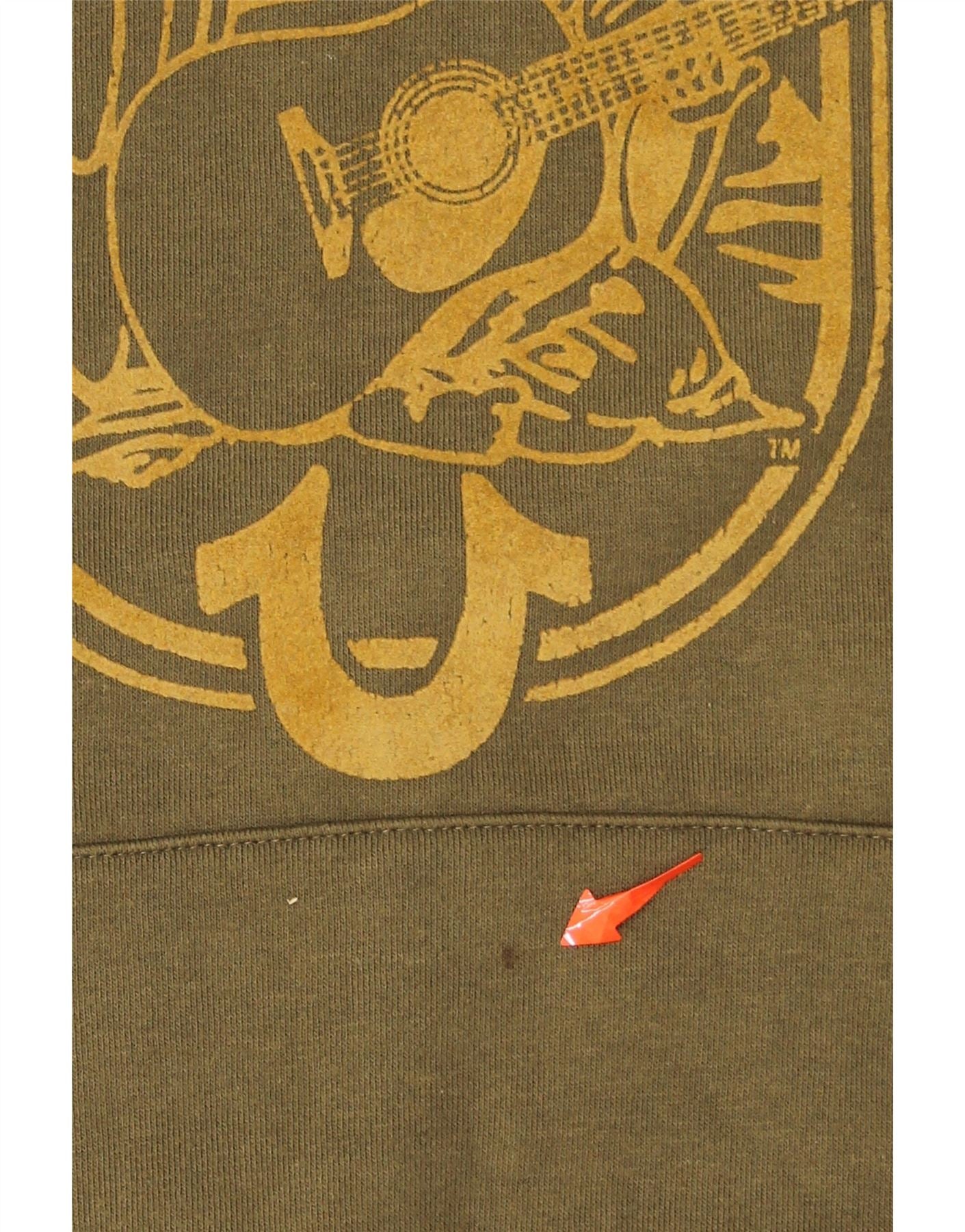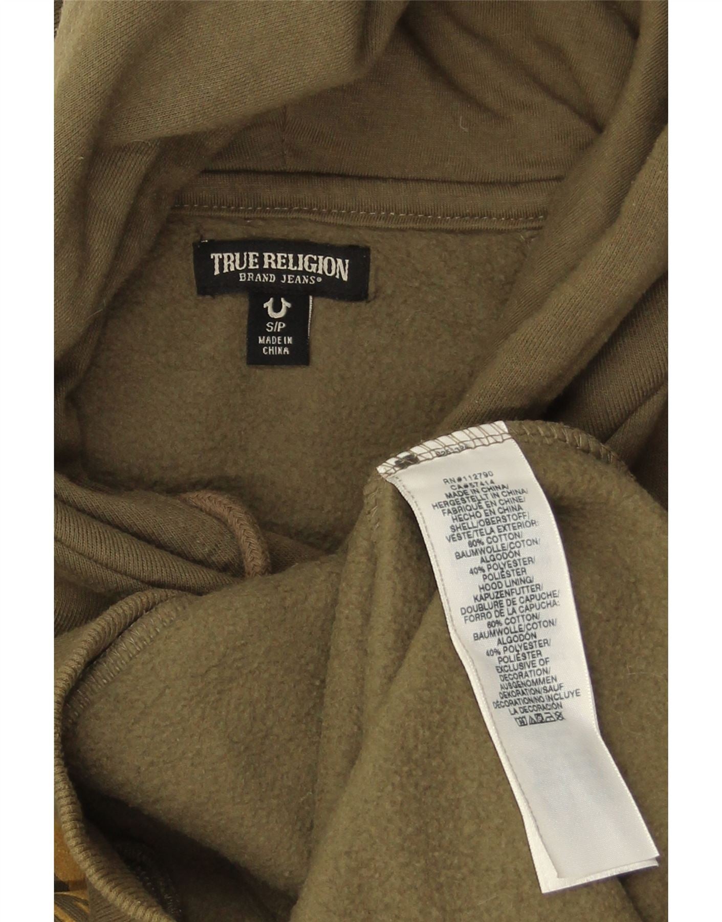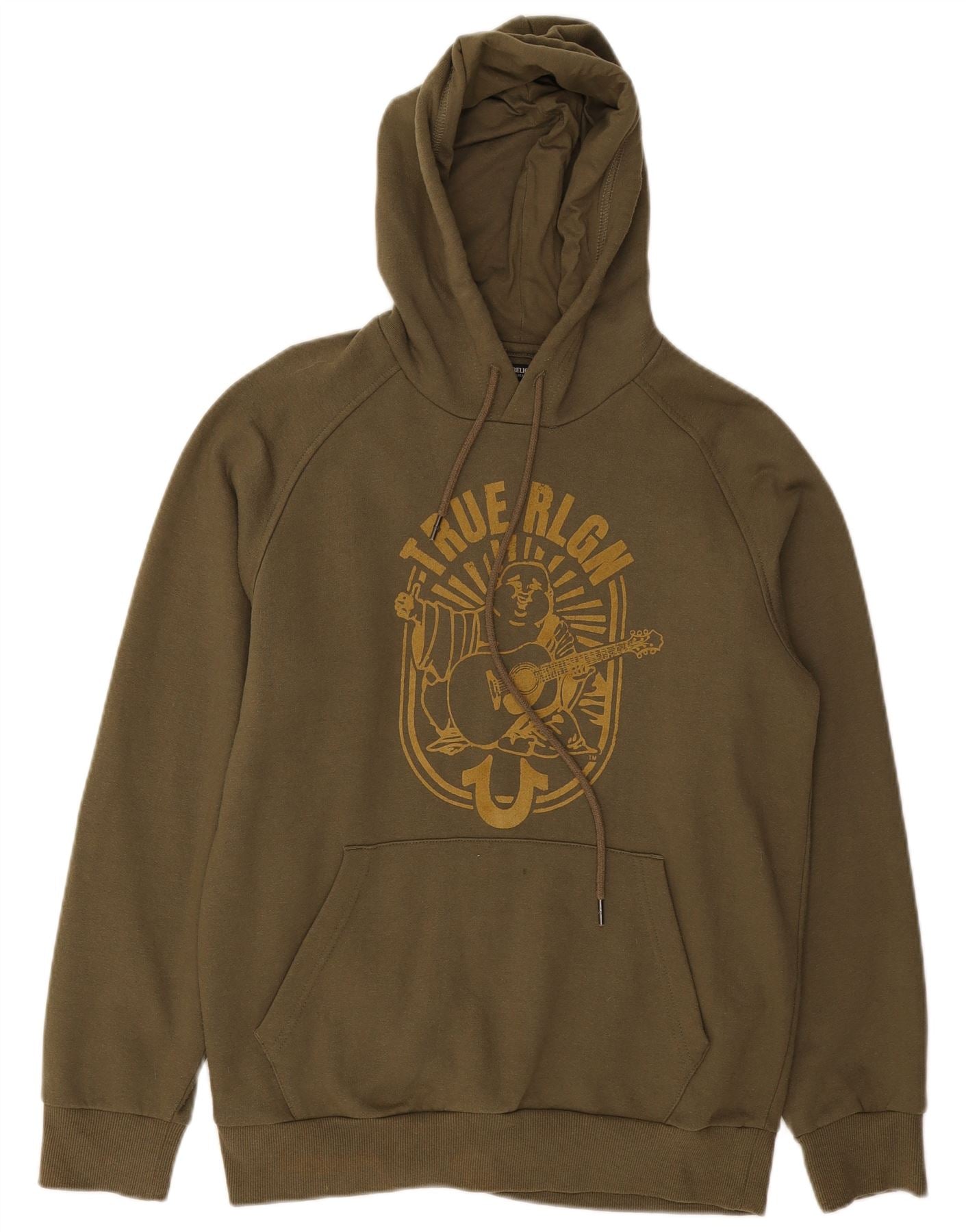 TRUE RELIGION Masculino gráfico moletom com capuz pequeno algodão cáqui