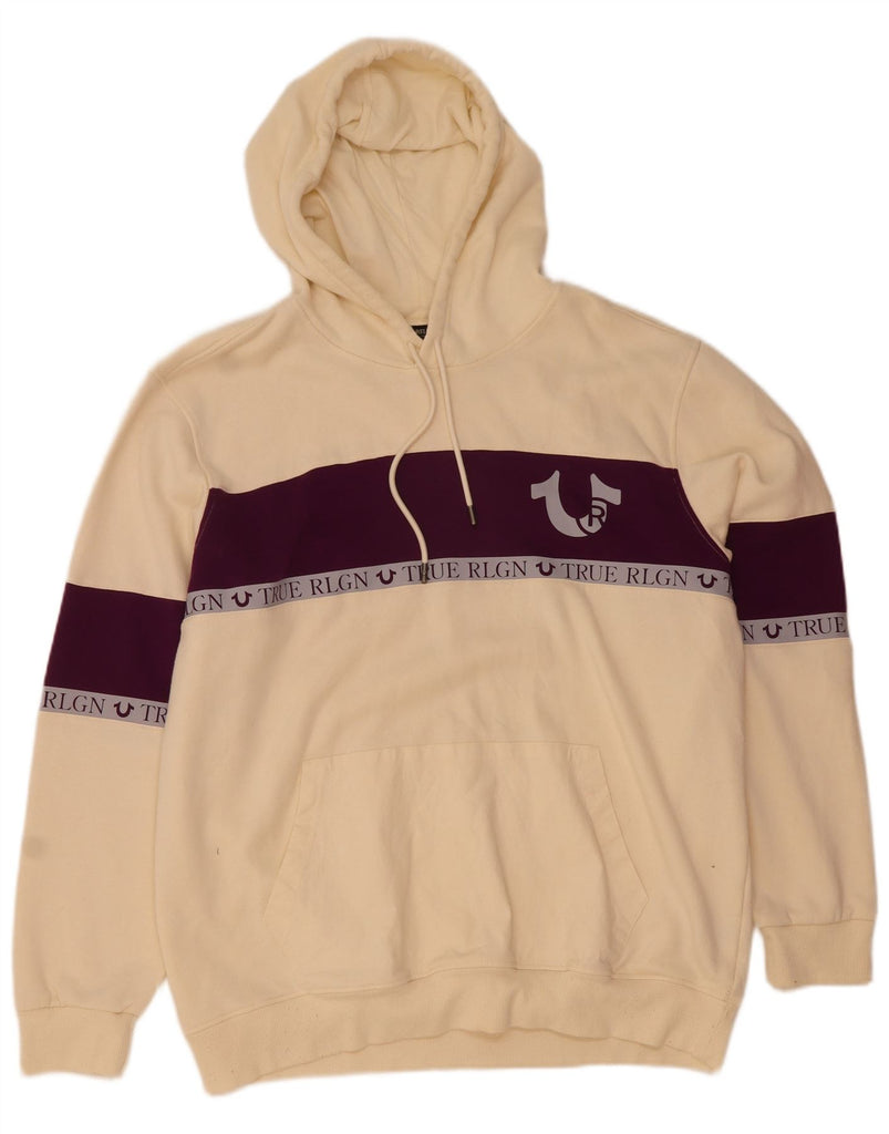 TRUE RELIGION Suéter gráfico masculino com capuz 3XL algodão colorido off white