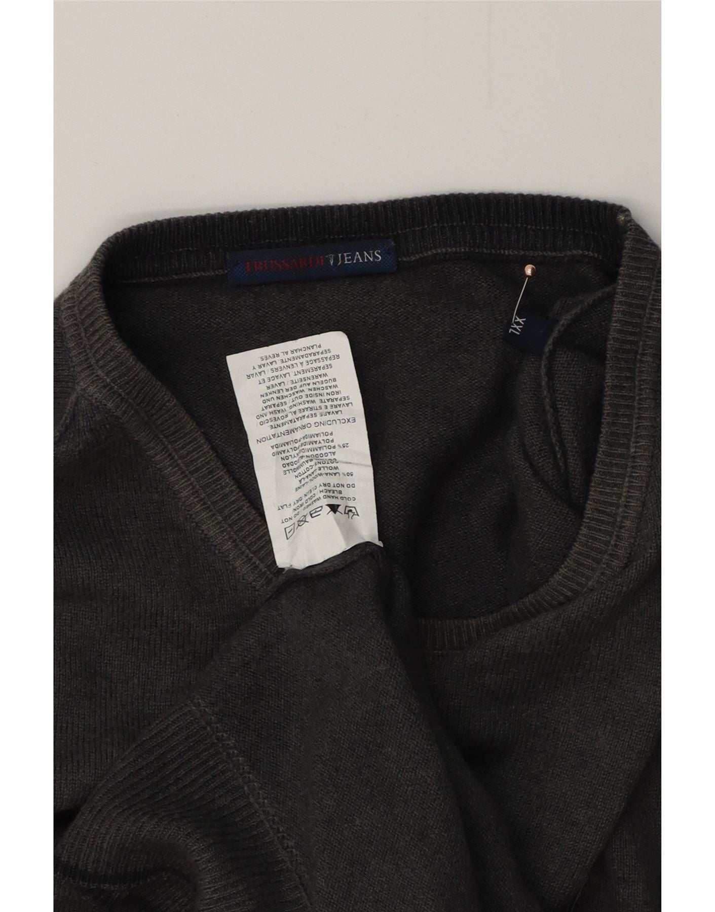 TRUSSARDI JEANS Suéter masculino com gola redonda 2XL lã cinza