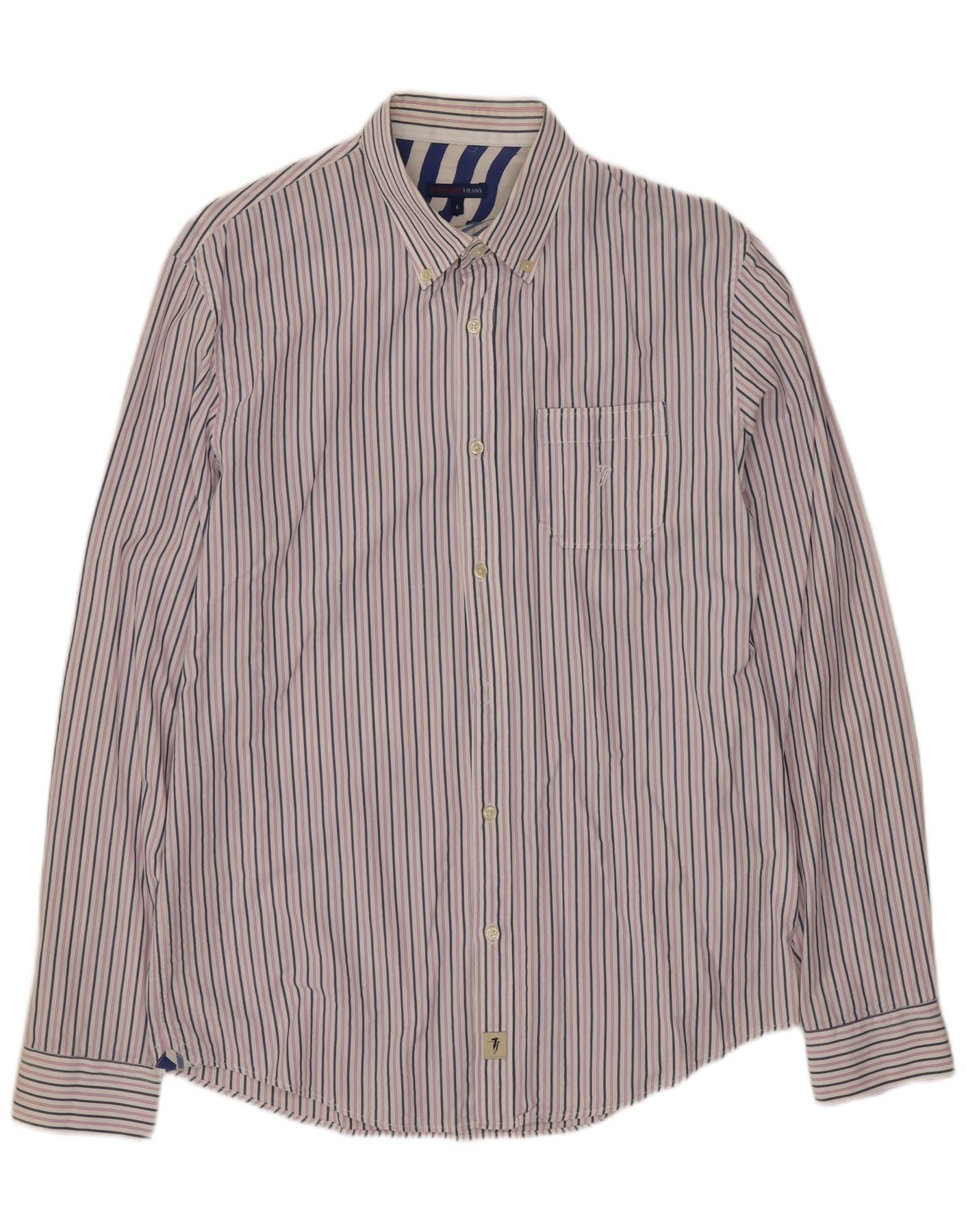 Camisa masculina TRUSSARDI JEANS grande algodão listrado branco