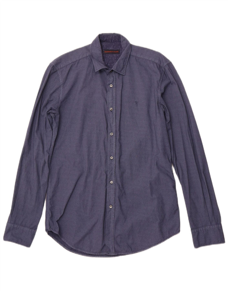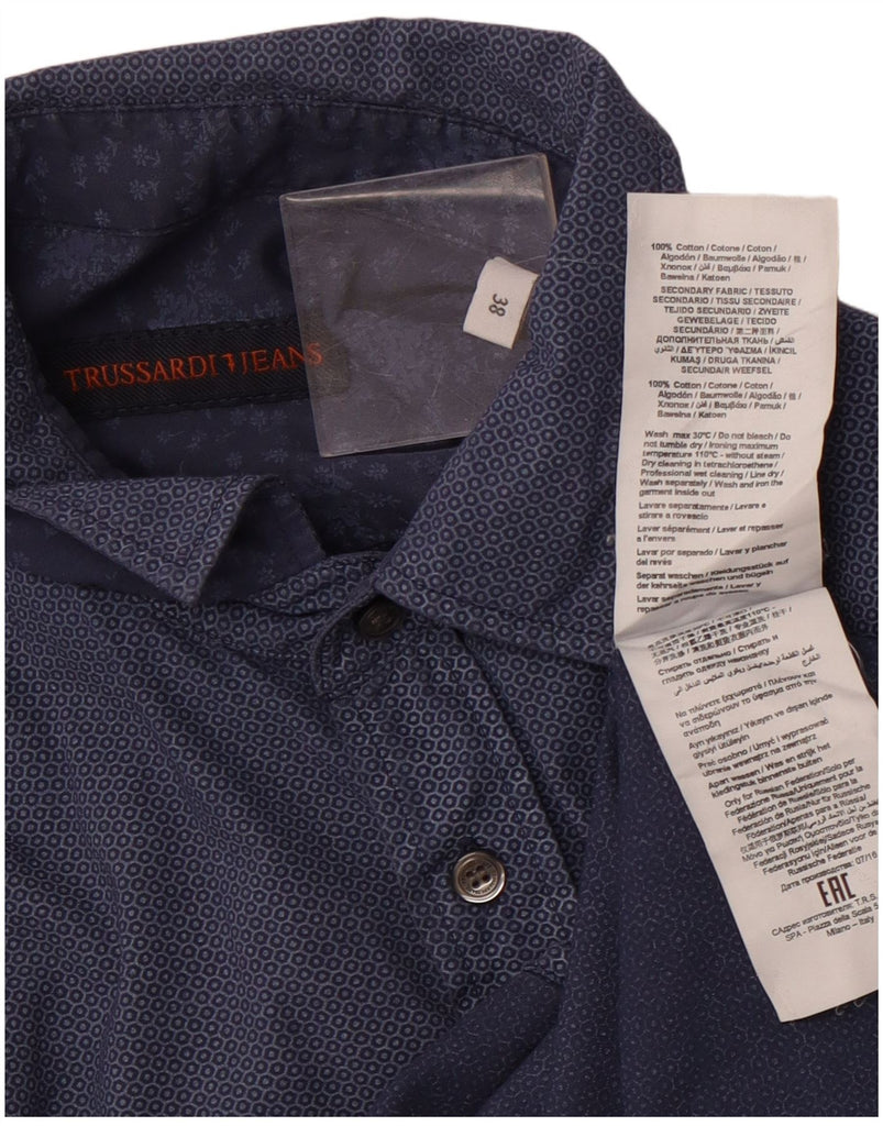 Camisa masculina TRUSSARDI JEANS tamanho 38 algodão geométrico azul marinho médio