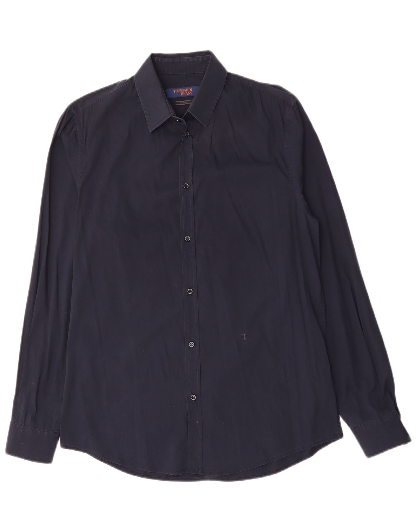 Camisa masculina TRUSSARDI JEANS Slim Fit tamanho 40 médio azul marinho algodão