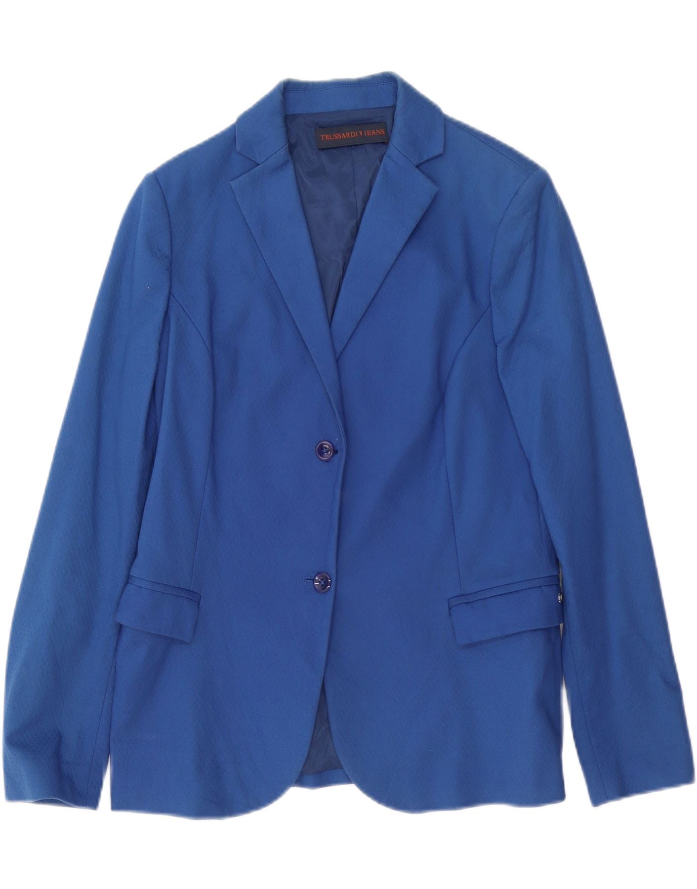 TRUSSARDI JEANS Womens 2 Button Blazer Jacket IT 46 Large Blue Cotton