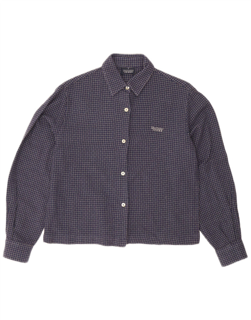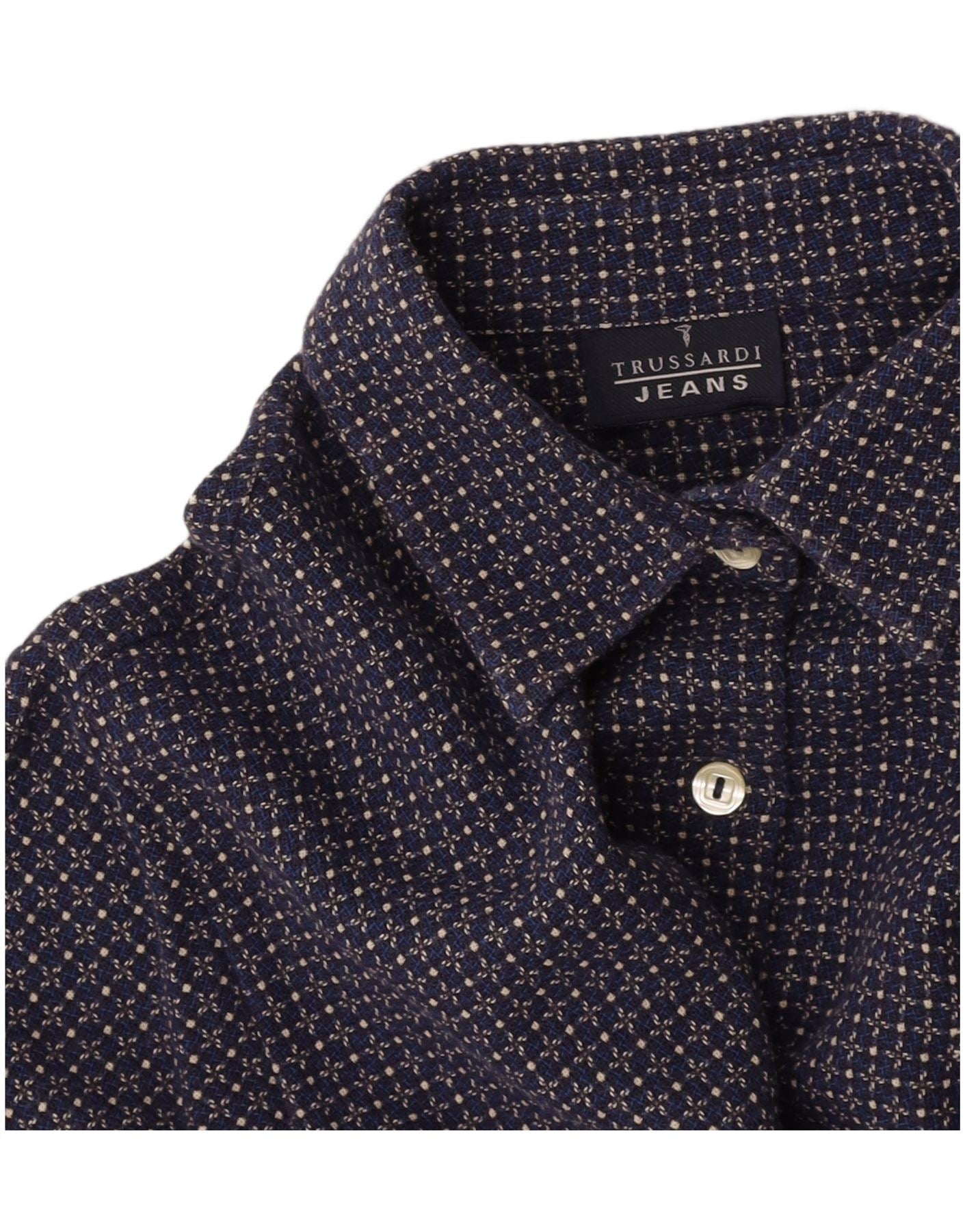 TRUSSARDI JEANS Womens Flannel Shirt UK 14 Medium Navy Blue Geometric