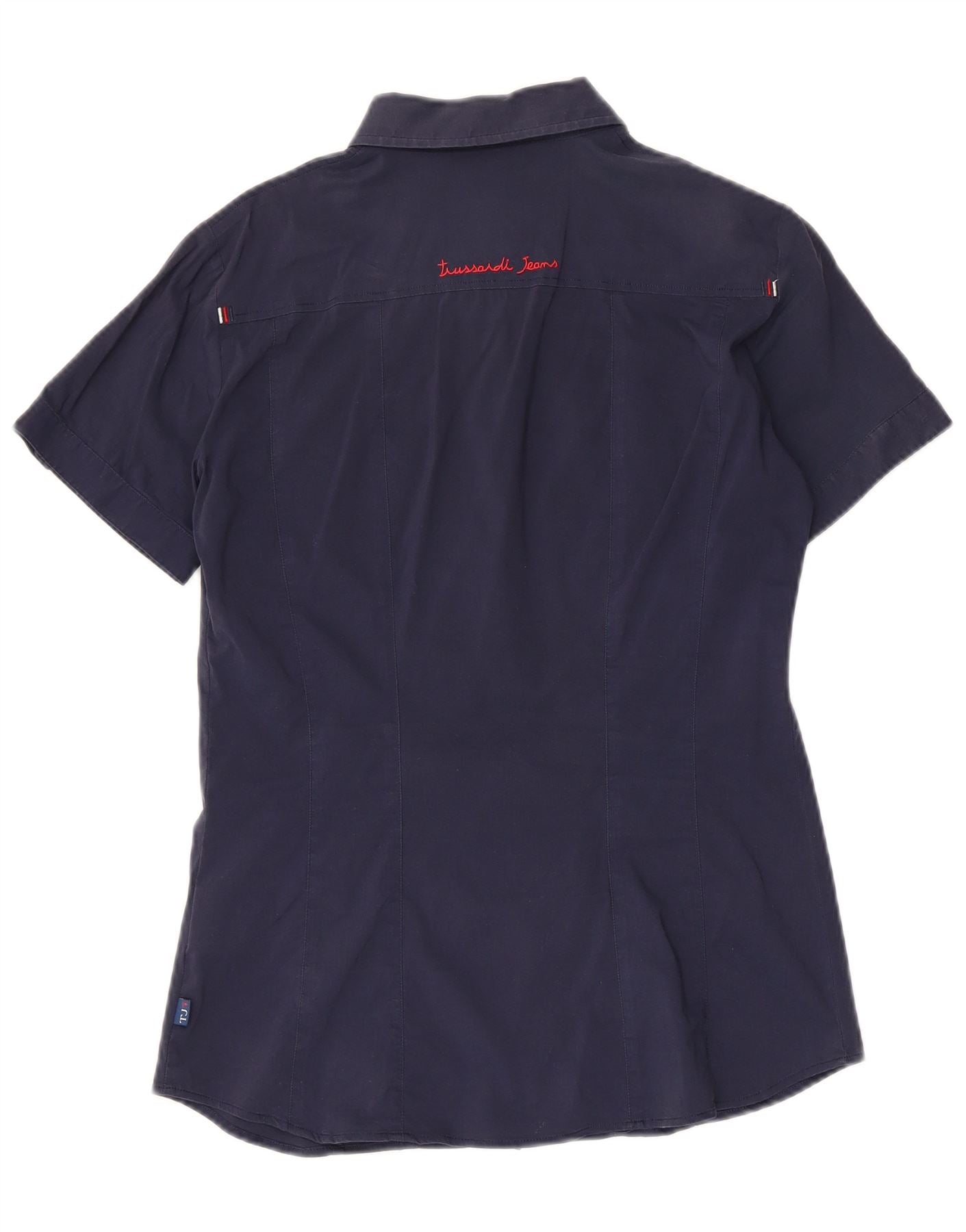TRUSSARDI JEANS Camisa feminina de manga curta Reino Unido 12 algodão azul marinho médio