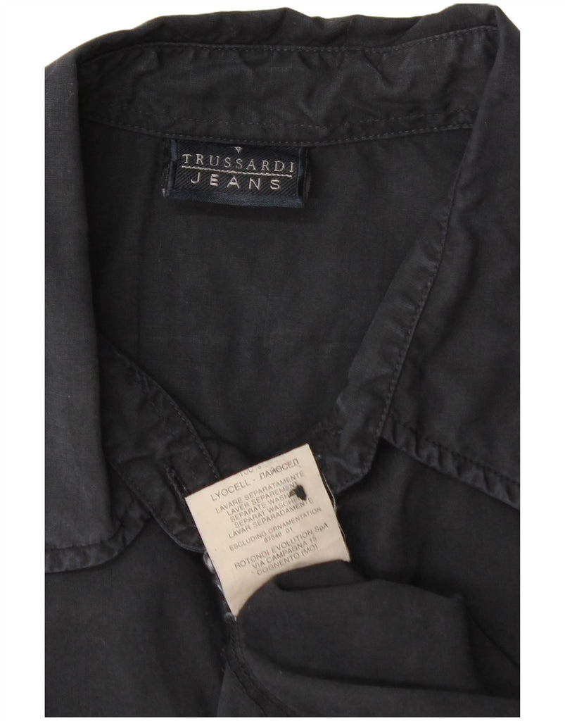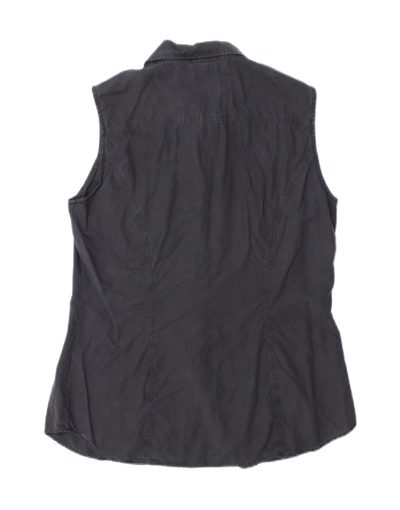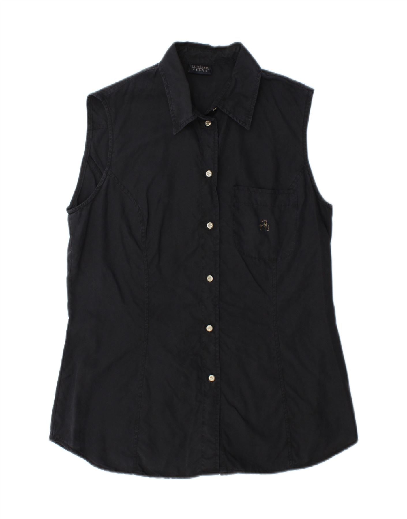 Camisa feminina sem mangas TRUSSARDI JEANS Reino Unido 14 grande azul marinho Lyocell
