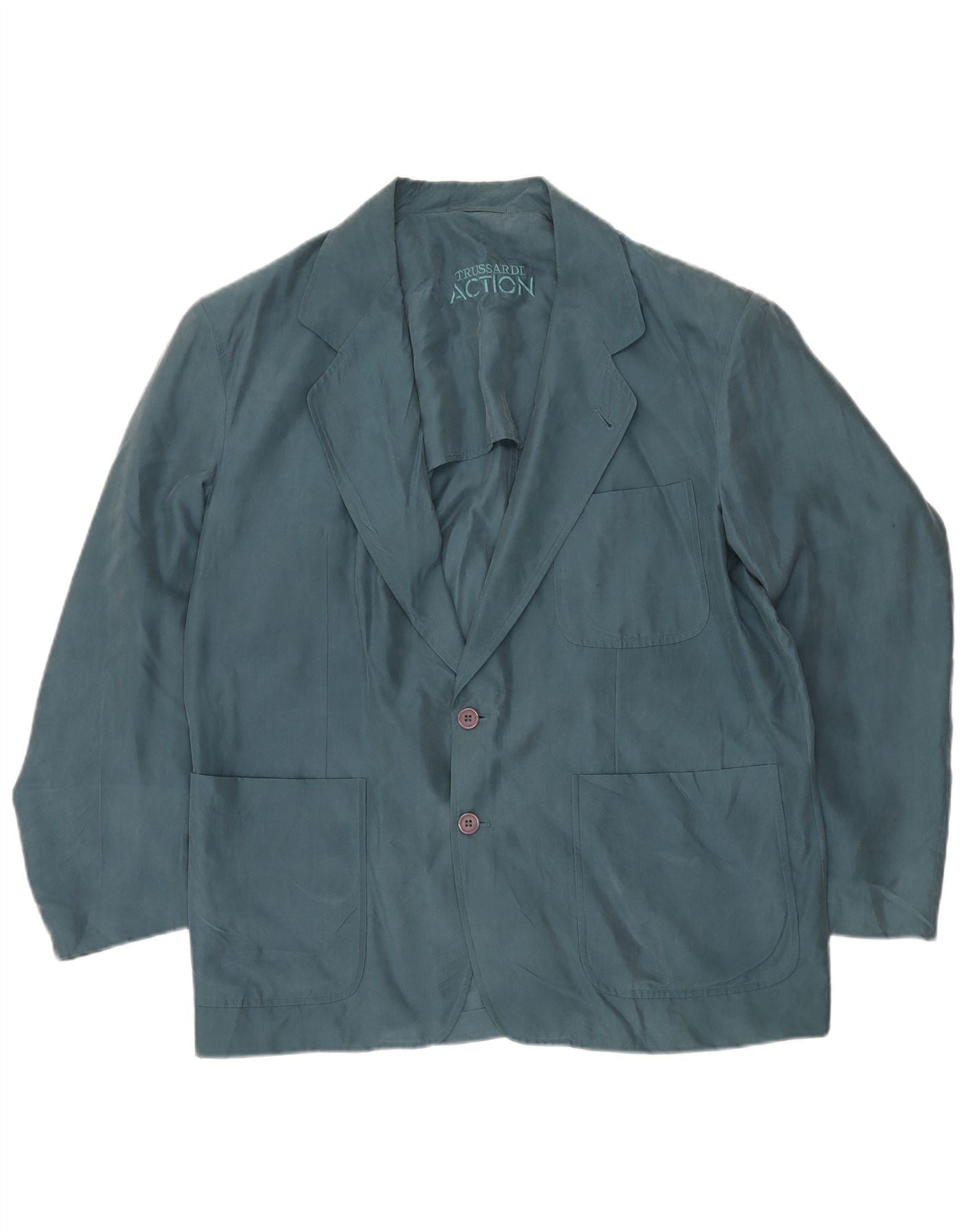 Jaqueta blazer masculina TRUSSARDI com 2 botões IT 54 2XL seda azul