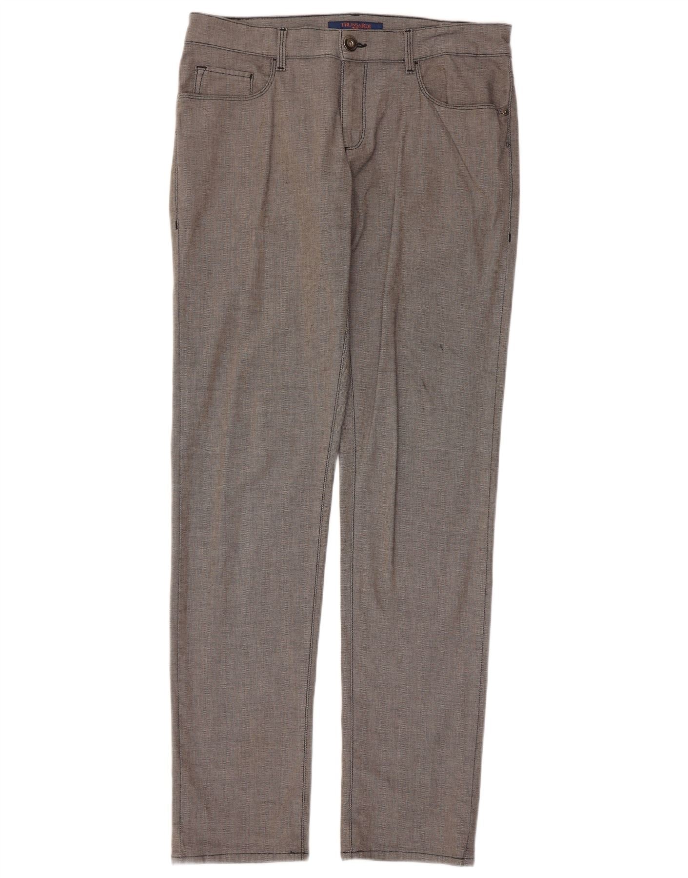 Trussardi Calça masculina slim casual W34 L33 algodão cinza